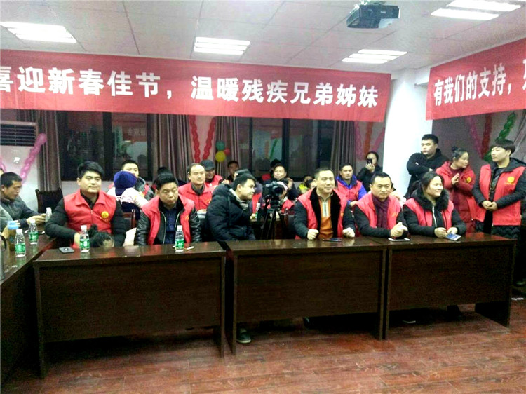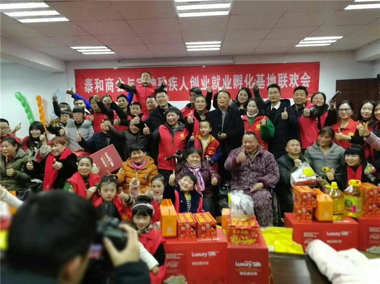 2月10日晚上7点,匆匆结束了一天的经营,岳阳泰和商会的主要班子成员及其亲友,带着大米、食用油、棉被、水果、蛋糕和水饺来到了岳阳宇坤残疾人创业就业孵化基地,与基地举办“残疾人创业者春节联欢会”。岳阳市爱心助残志愿者协会会长姚平带领朱荣梅、龙霞、陈富君、钟清、朱慧芳、熊湘毅、董大宪、李丽萍、方芳等20几名优秀助残志愿者与商会来宾和12名残疾人创业者代表欢聚一堂,畅谈残疾人事业发展新面貌,喜迎2018新春佳节。