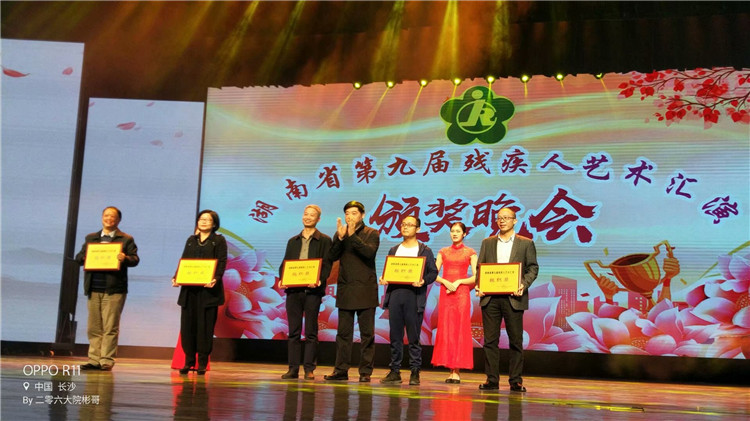 我市精心编创选送的《瑶族舞曲》和《豫乡行》分别荣获声乐类、器乐类一等奖,《雪山魂塑》荣获器乐类二等奖,《父亲的草原母亲的河》荣获声乐类三等奖,《红军之歌》和《超越梦想》均荣获舞蹈类三等奖,《刘三做爹》荣获戏曲小品类三等奖,可谓硕果累累,成绩突出。一等奖获得者肢残人歌手胡倩梅和二胡演奏师李朋齐欣喜地告诉岳阳电视台随行记者:此次艺术汇演,不仅检阅了我们的艺术技艺,更让我们得到了一个宝贵的学习交流机会,希望在社会各界的关心支持下,岳阳残疾人文化艺术的精神生活小康也能够早日实现!