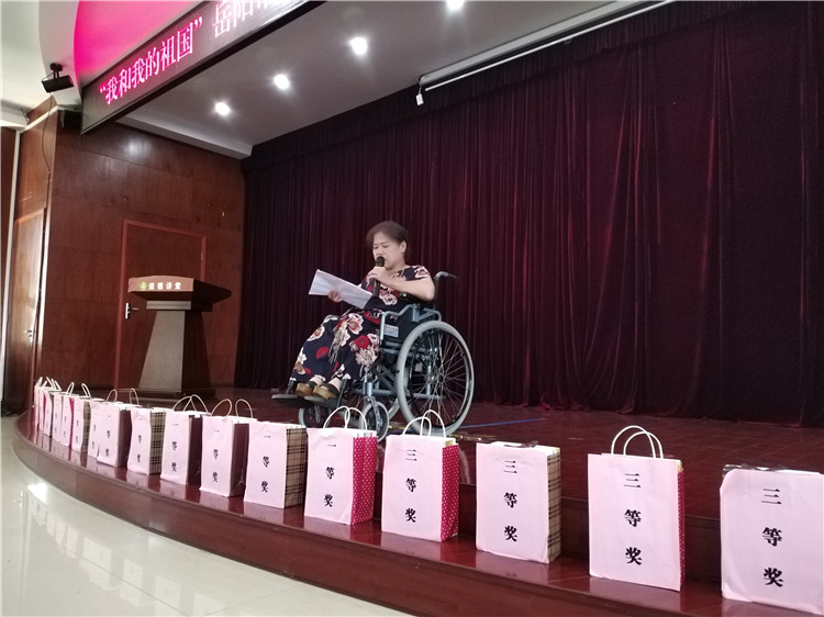 为热烈庆祝建国七十周年,按照湖南省残联与省文化和旅游厅《关于开展第六届全省残疾人文化周活动的通知》要求,以特殊艺术形式生动展示我市残疾人事业健康快速发展的喜人景象,7月30日上午,岳阳市残联隆重举办了“我和我的祖国:第二届岳阳市残疾人主题征文朗诵比赛”,来自全市各县市区的12名残疾人选手冒着酷暑参加了现场比拼。市残联党组书记、理事长方欲林,党组成员、副理事长李正望到现场观摩指导比赛。40多名爱心助残志愿者闻讯到场为残疾人选手服务并加油!