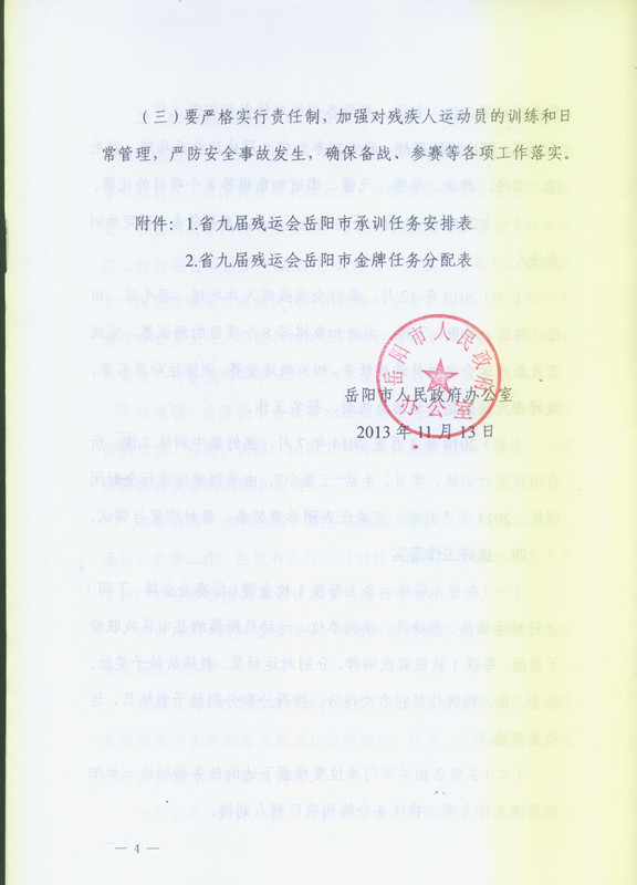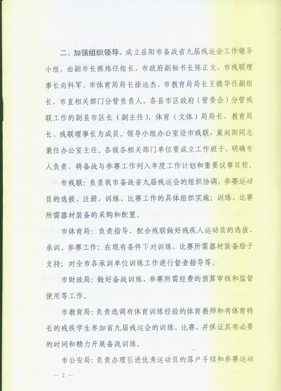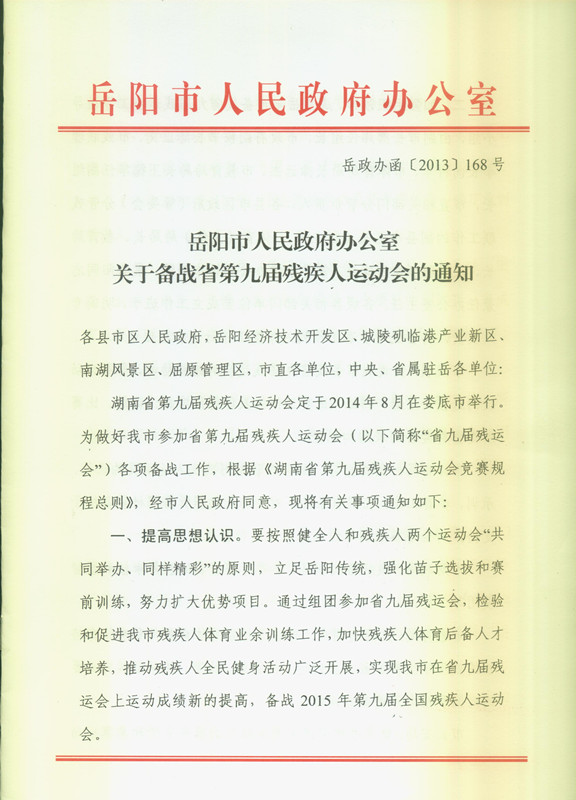 岳阳市人民政府办公室关于备战省第九届残疾人运动会的通知
