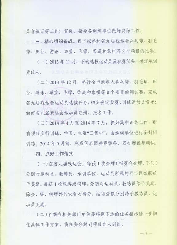 关于印发《2014年度岳阳市选拔训练运动员备战省第九届残疾人运动会工作方案》的通知