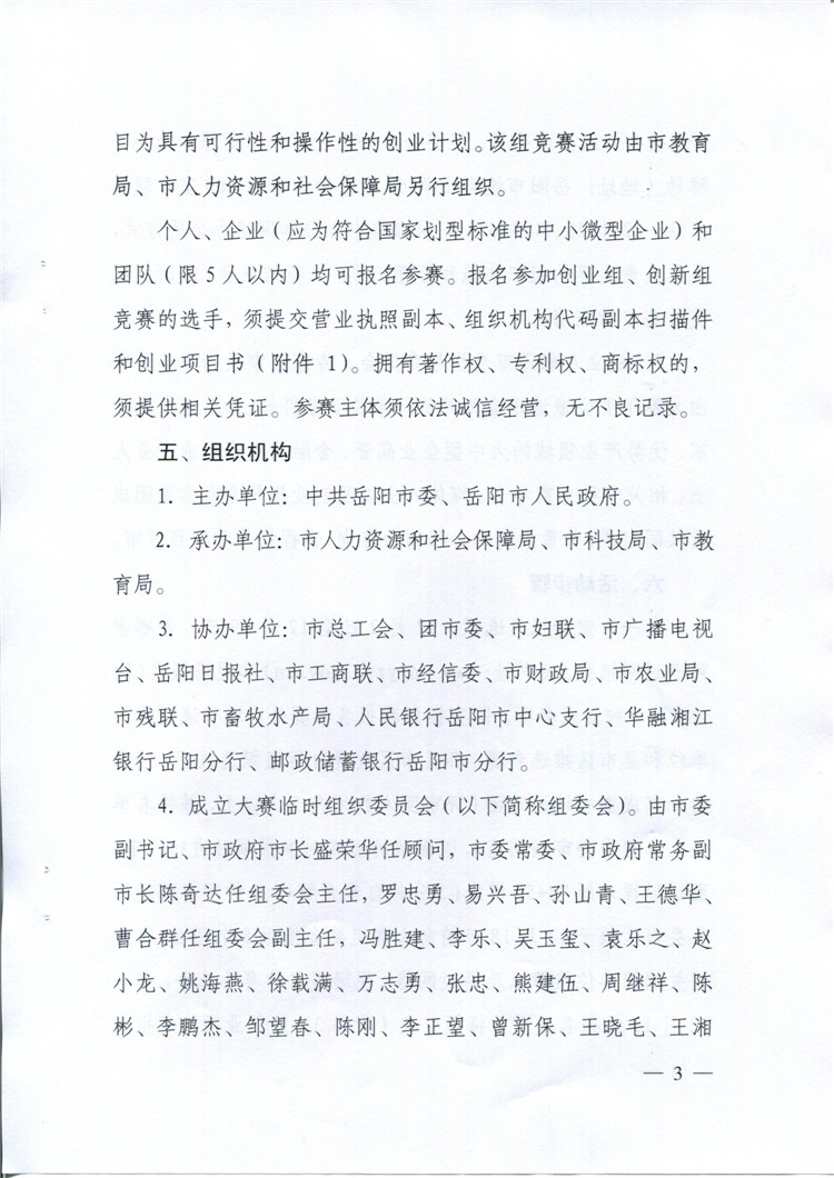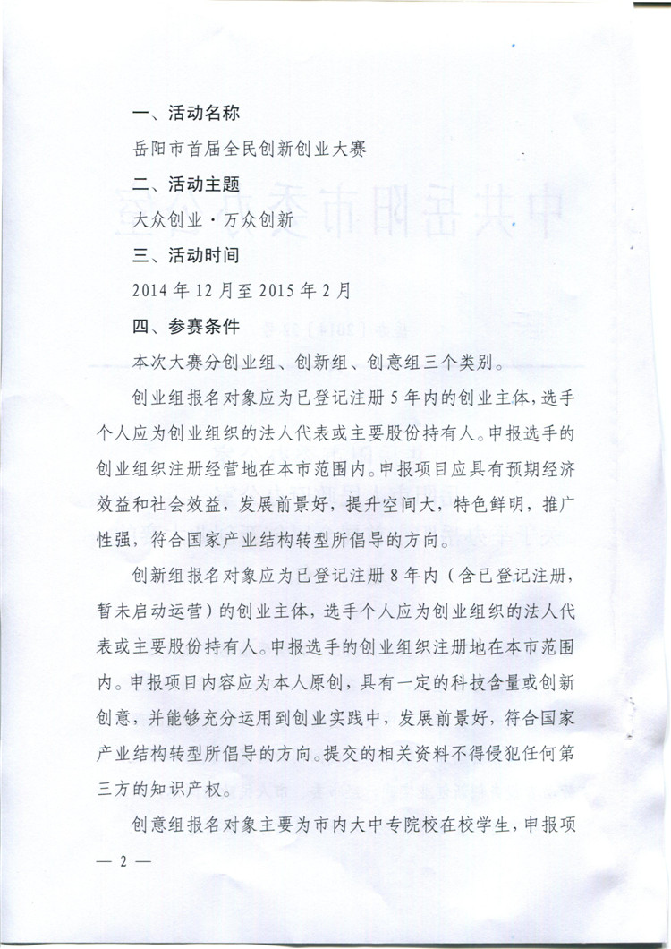 关于举办岳阳市首届全民创新创业大赛的通知