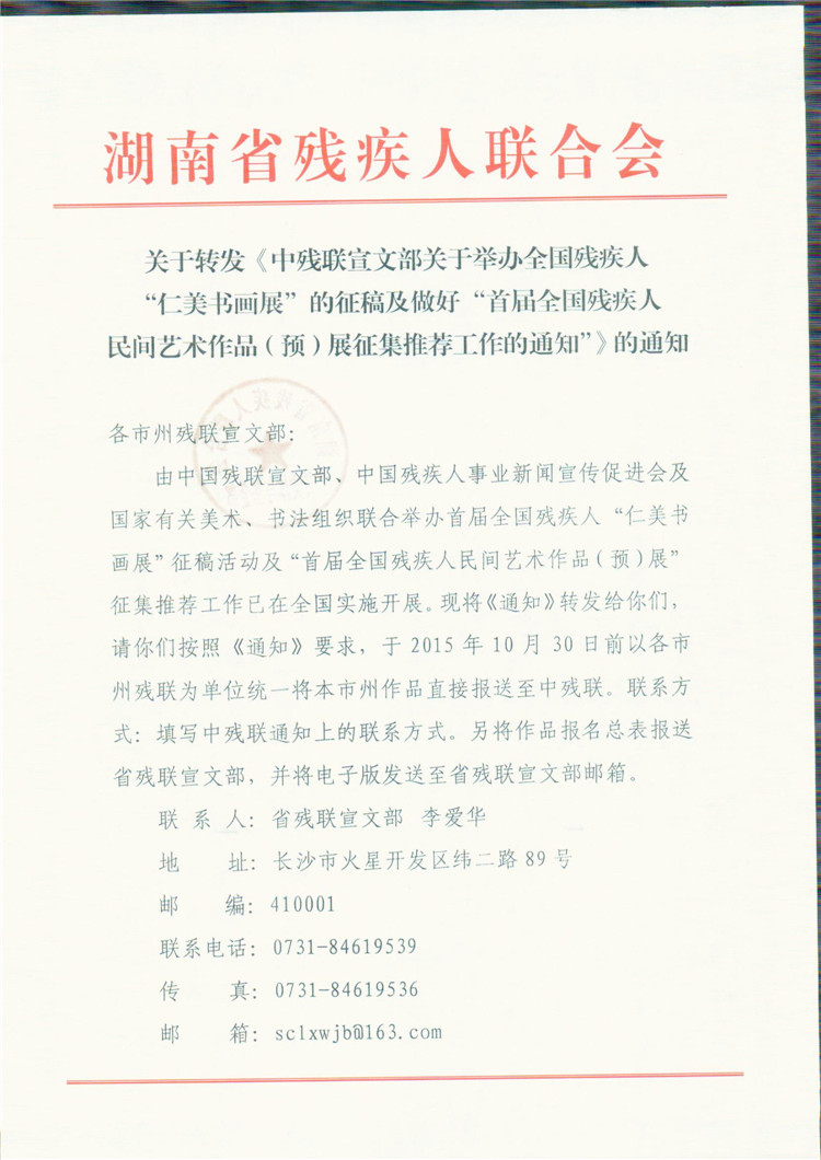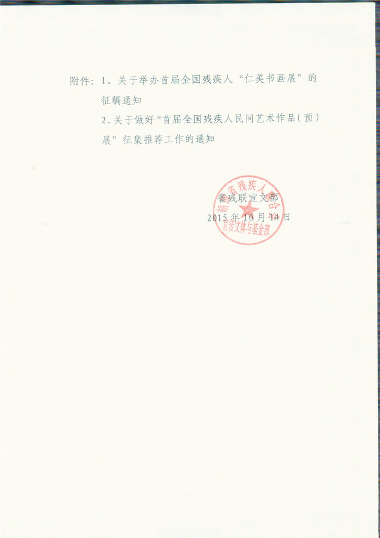 1、关于举办全国残疾人“仁美书画展”的征稿通知