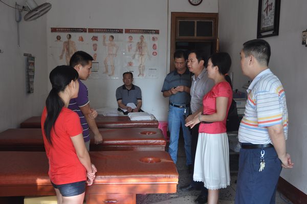 图为市残联副调研员巢向阳一行参观盲人保健按摩诊所