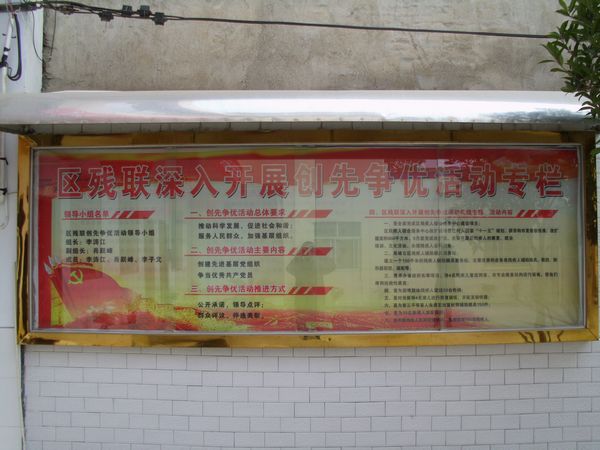 图为君山区残联开展创先争优活动专栏
