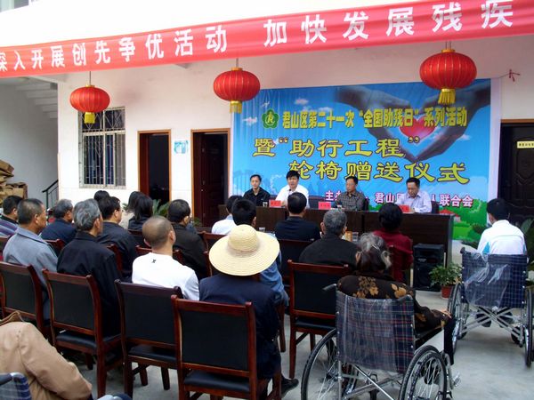 为迎接第二十一次“全国助残日”,君山区残联围绕今年的助残日“改善残疾人民生,保障残疾人权益”,开展了一系列活动,共投入经费5万元,发放各类残疾人辅助器具100余件,走访慰问贫困残疾人家庭35户,得到广大残疾人朋友的热烈欢迎。