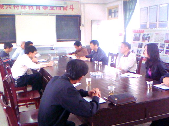图为黎耀辉副县长一行与平江县特校教师座谈