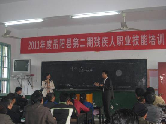 11月5日,岳阳县2011年第二期残疾人职业技能培训在县高科职校开班。县劳动、财政和残联等相关领导出席开班仪式。本次培训以电焊工操作为主要内容,培训采取理论教学与现场实践相结合的方式进行。来自全县各乡镇近100名残疾人将通过本次培训走上新的从业之路。