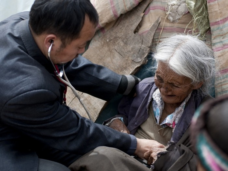 白鹿镇村民都住得比较分散,大多是老人。有些病人来看过门诊,病情不是很棘手,但是需要后续检查或治疗,因此徐宙雄不得不经常下乡访查。“老乡!老乡!”听到这豪迈而亲切的呼喊,村里人就知道是徐医生来访了。在地势高低不平的村子间来回走访,徐宙雄却一点不感觉累:“这不算累,以前在玉树救灾的时候才叫累,这边还可以!”老徐对病人的关心令村里人很是感动,每次他从病人家里出来,所有家属都一边送他出门一边用难懂的方言叮嘱:“一路好走,慢点走!”