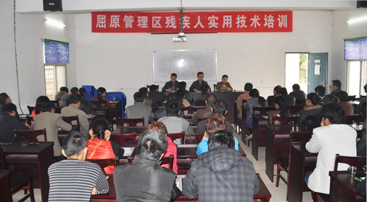2012年,屈原管理区残联残疾人就业培训工作始终坚持“培训与就业、培训与扶贫、培训与科技普及”三结合原则,采取多种合作方式,多渠道、多层次、多形式,最大限度利用社会资源开展培训工作。今年,他们将本年度培训任务分解成两期完成,先后有130余人参加培训。