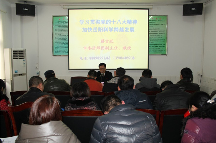 为认真学习贯彻党的十八大精神,1月11日下午,岳阳楼区残联邀请市委讲师团副主任蔡吉跃教授作了“学习贯彻党的十八大精神,加快岳阳科学发展”的宣讲报告。党组、理事会领导带领全体干部职工认真组织了学习。