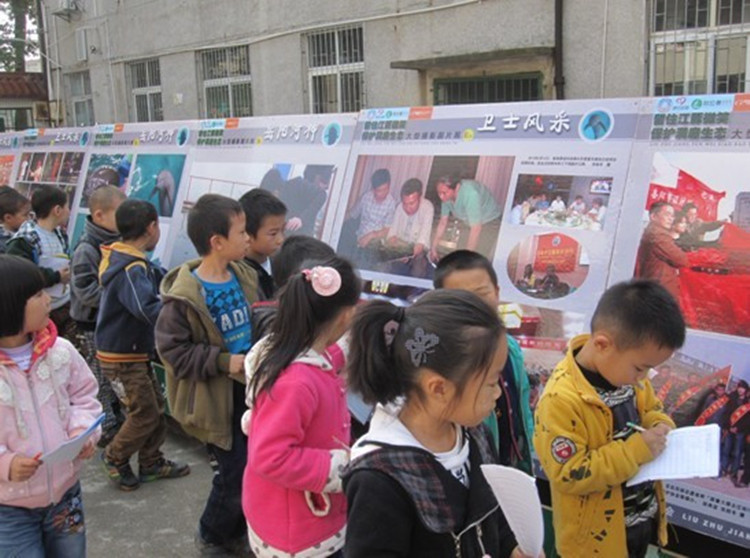 岳阳县举行“拯救长江江豚 保护洞庭生态”大型公益影画展现场