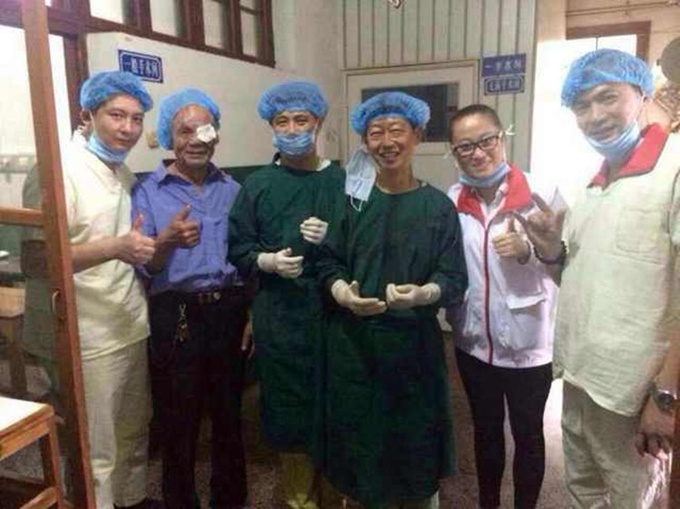 医疗专家和白内障患者合影