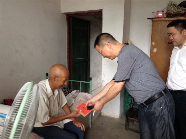 最后,走访慰问了文桥镇文桥街77岁的老党员李高雄。老人家1958年光荣入党,已有57年党龄,当看到党和政府还没忘记他老人家时,还兴致勃勃的背诵了毛主席语录、《愚公移山》等毛主席著作,并清楚地说出发表的时间和字数,以表达对党和政府的谢意,体现出一名基层老党员身残志坚,对党深情的拳拳赤子之心。