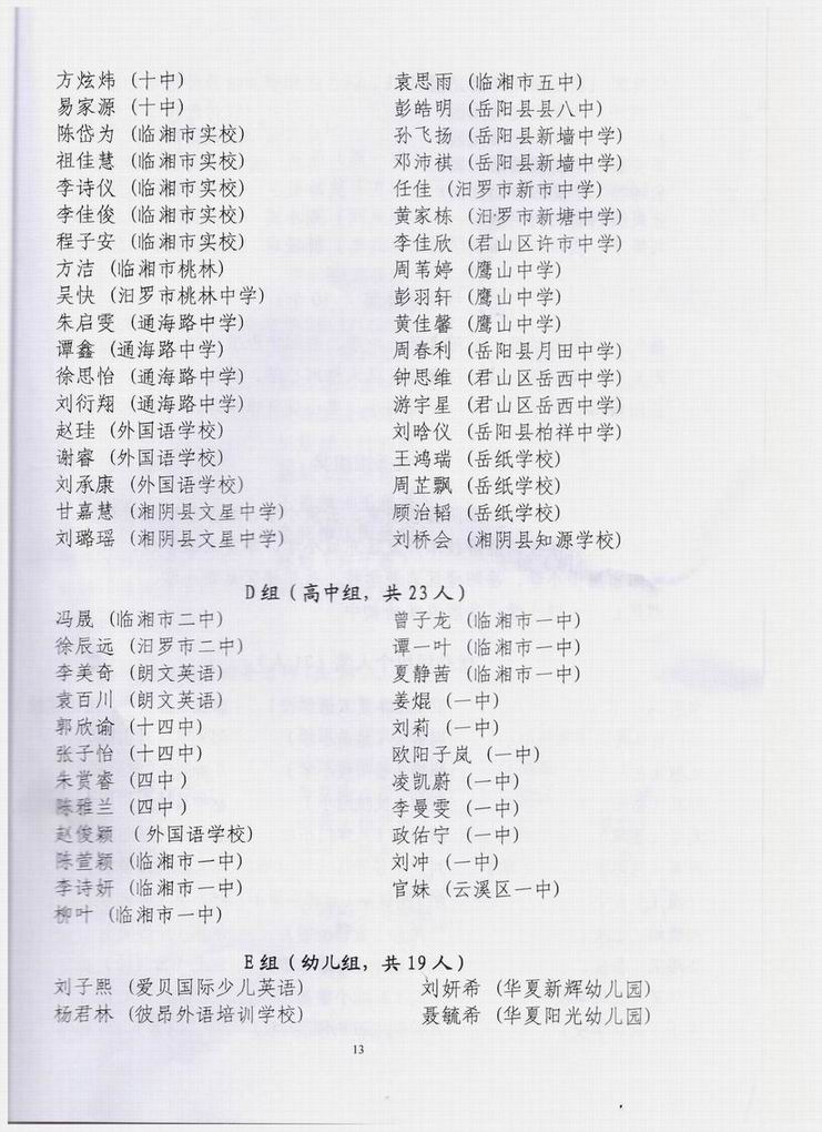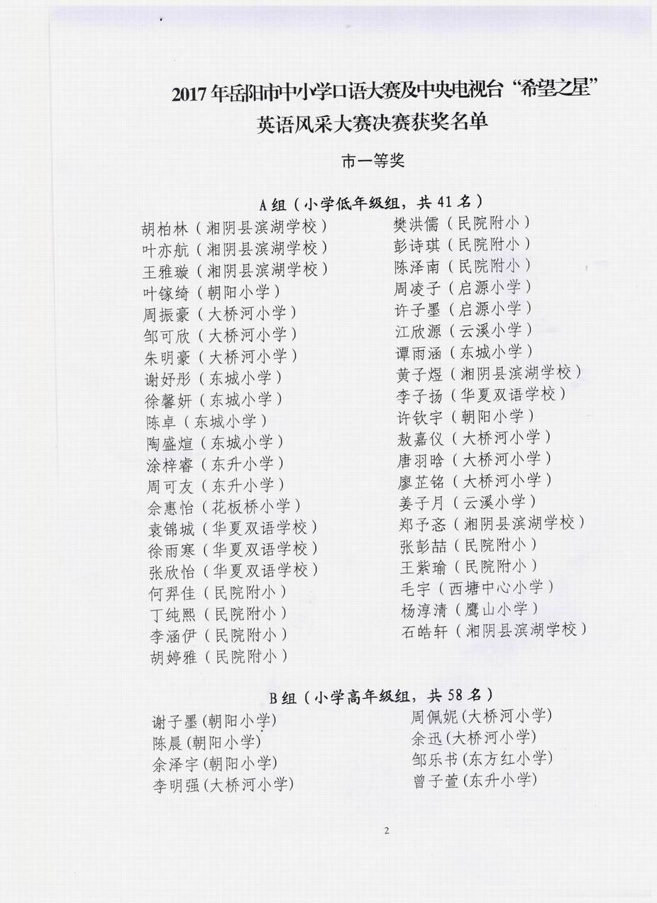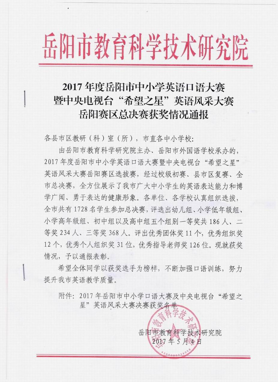 2017年度岳阳市中小学英语口语大赛
