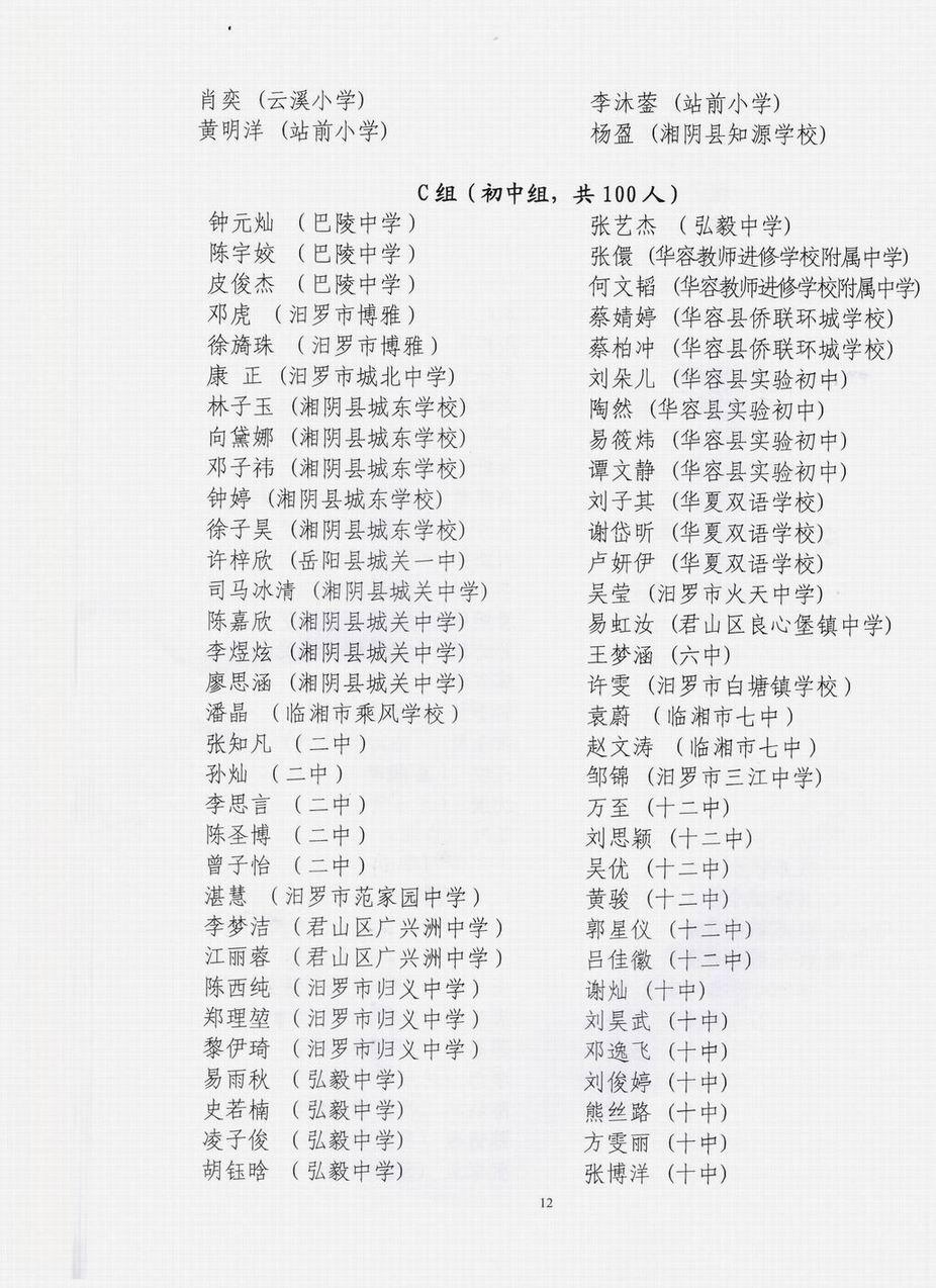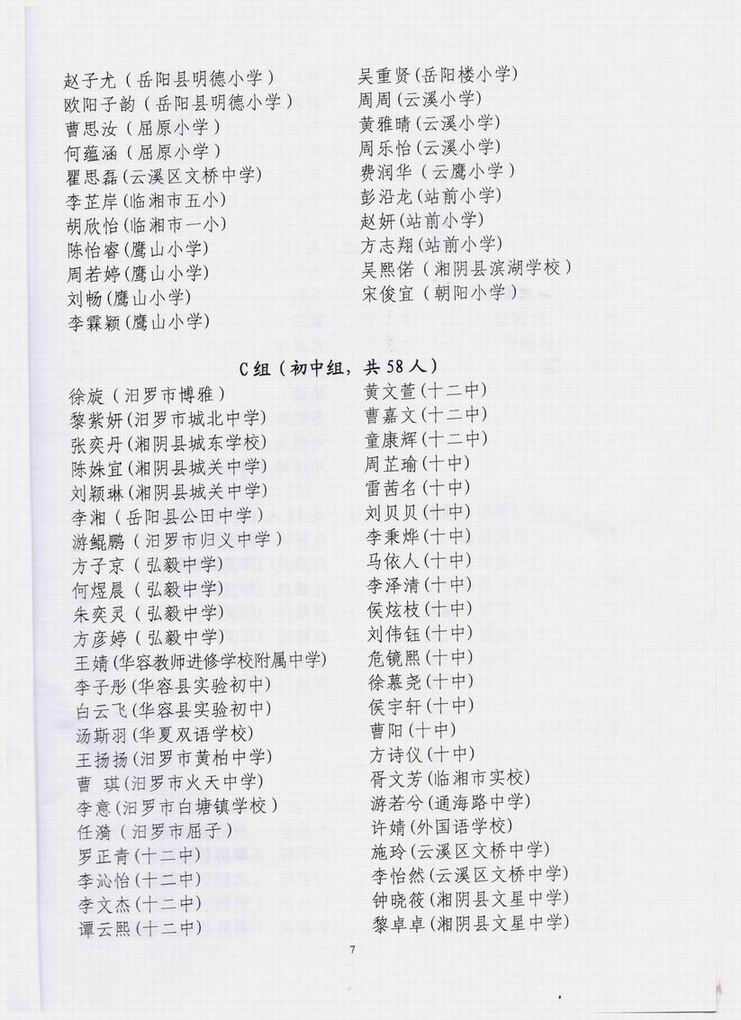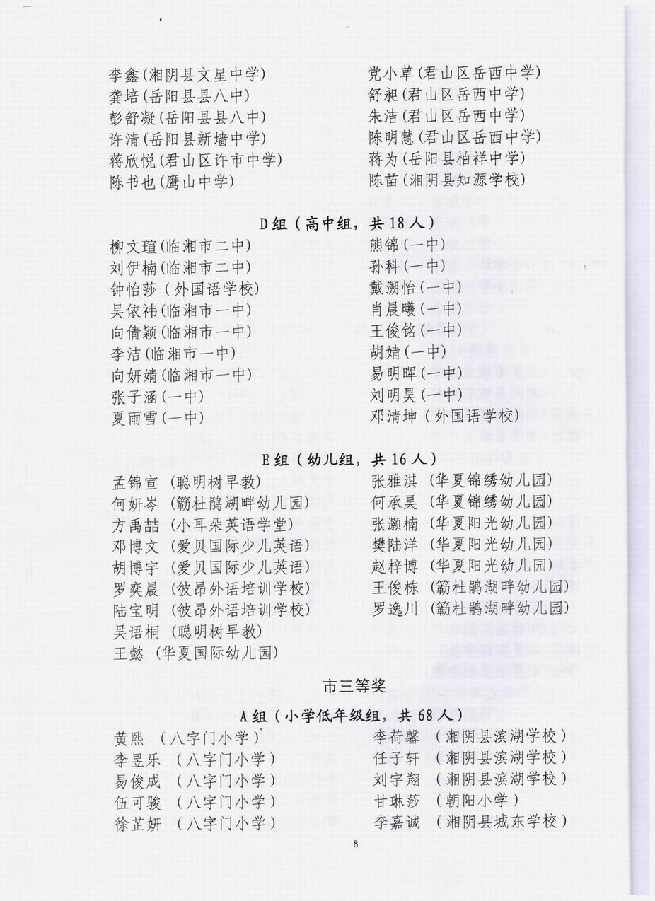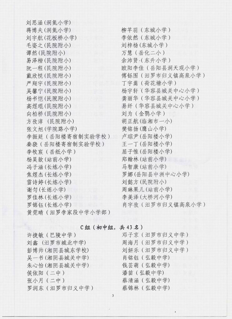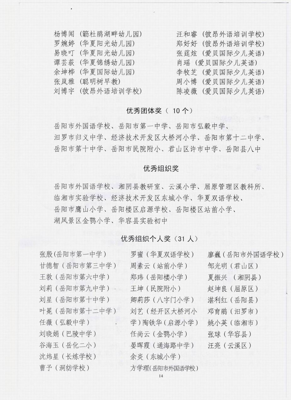 岳阳赛区总决赛获奖情况通报