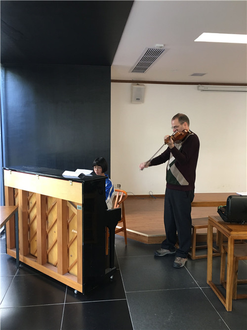 这次他不远万里,上完中国音乐学院的课程后,搭乘凌晨4点的火车到达岳阳,在宾馆休息了不到4个小时就到我们学校开始为下午的演奏会做准备。当我们问到为何如此匆忙和紧张时,他回答:
