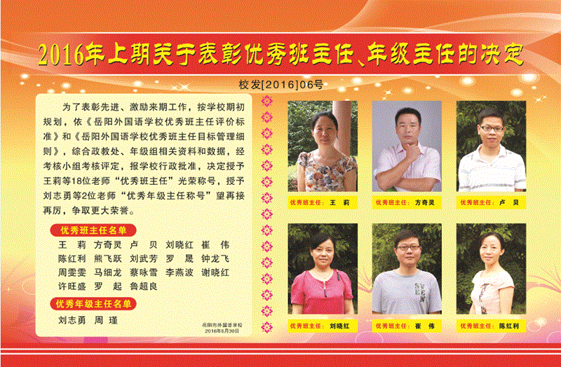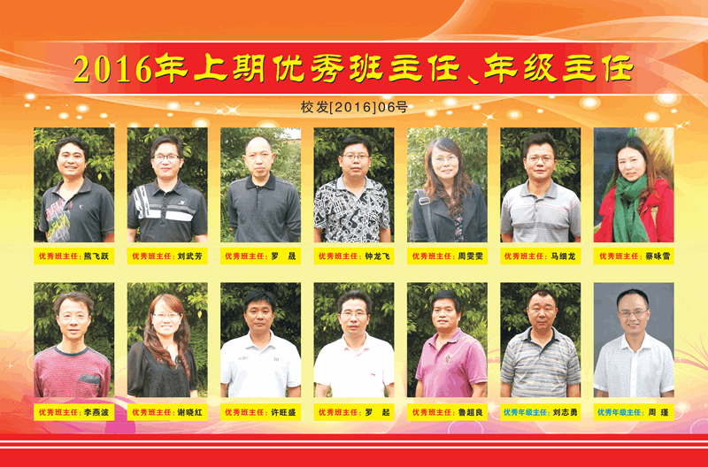 2016年上期优秀班主任、年级主任