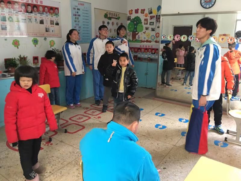 到达特校后学生们分成两组,换组到聋部和培智部听课,了解特校的情况。同学们一走进教室,孩子们们早已等候在那里。这是一群特殊的孩子,他们有的患有智障,有的则患有听力、语言等障碍。特校的孩子们虽然身体上有缺陷,却依旧不失孩童的那份天真可爱。课间,学生们与孩子们开展小游戏,在游戏的过程中,孩子们从陌生到熟悉,游戏从简单到复杂,促进了孩子与学生们之间的交流沟通,孩子们的脸上也露出开心的笑容。作为大哥哥大姐姐,同学们与孩子们亲切交流,并鼓励他们要对未来充满信心,克服人生中的坎坷,让特殊学校的孩子们感受到关心和关爱,增强了他们接触外界的信心和勇气。