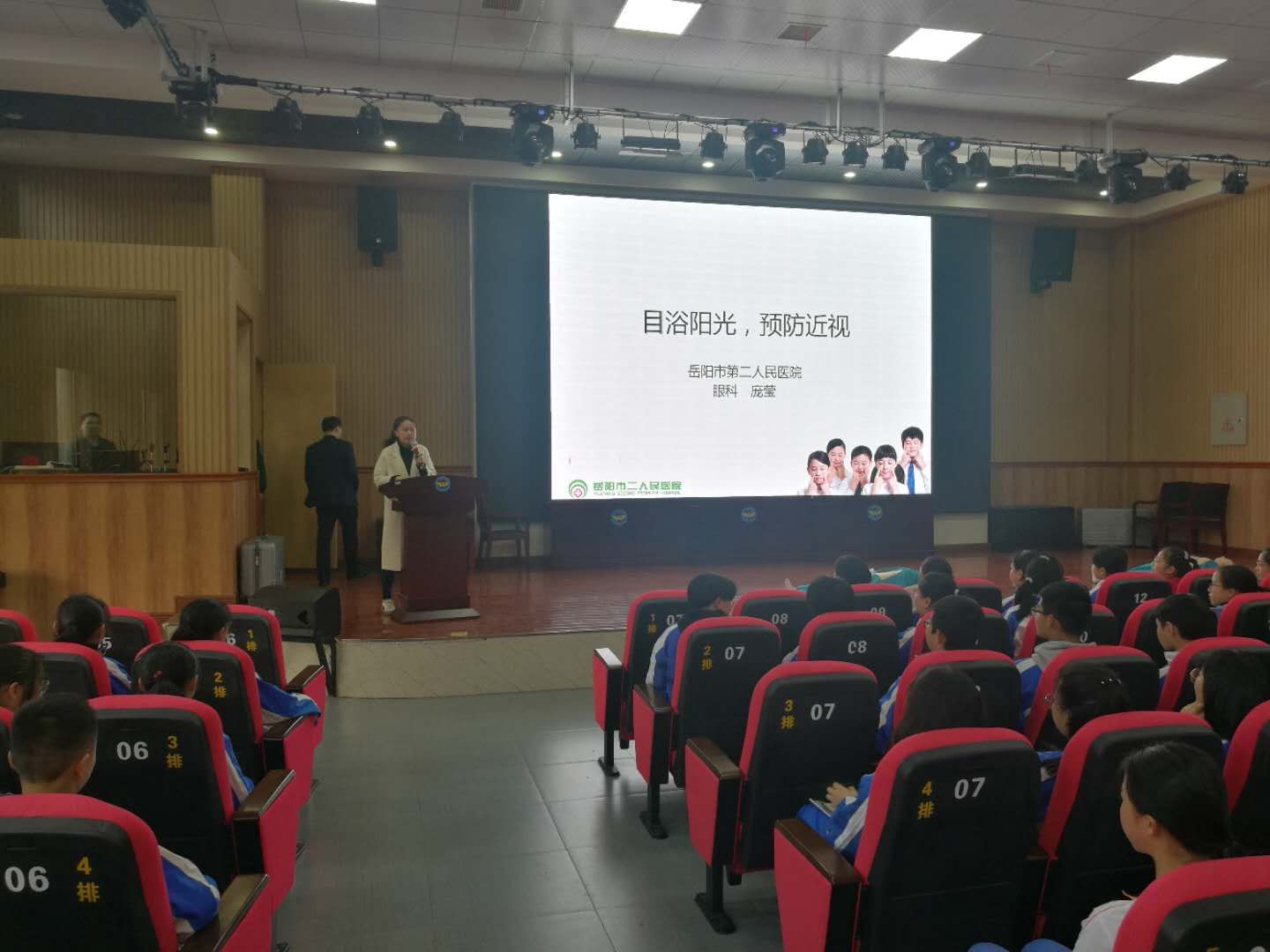 庞莹医生针对目前青少年近视发病率较高的特点,结合图片用通俗生动的语言、深入浅出地解释了什么是近视,近视形成的原因以及近视给学习、生活带来的极大不便。她特别强调保护眼睛预防近视,要注意用眼卫生,不可持续用眼;要坚持认真做好眼保健操;不长时间玩电脑、看电视;积极参加体育锻炼;看书写字姿势要正确等,增强了师生爱眼、护眼的意识。
