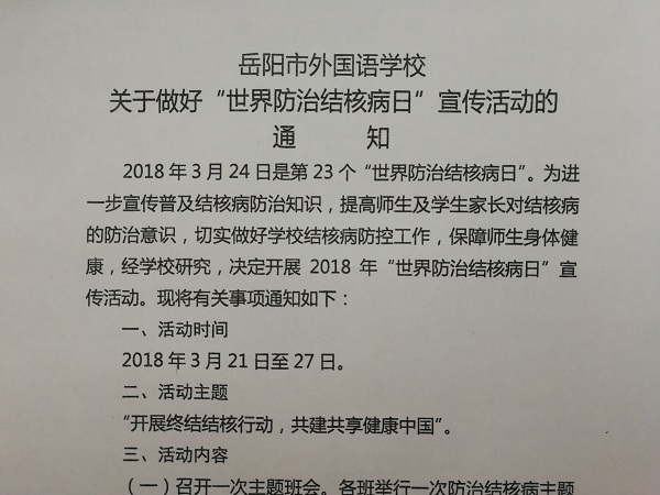 我校开展“世界防治结核