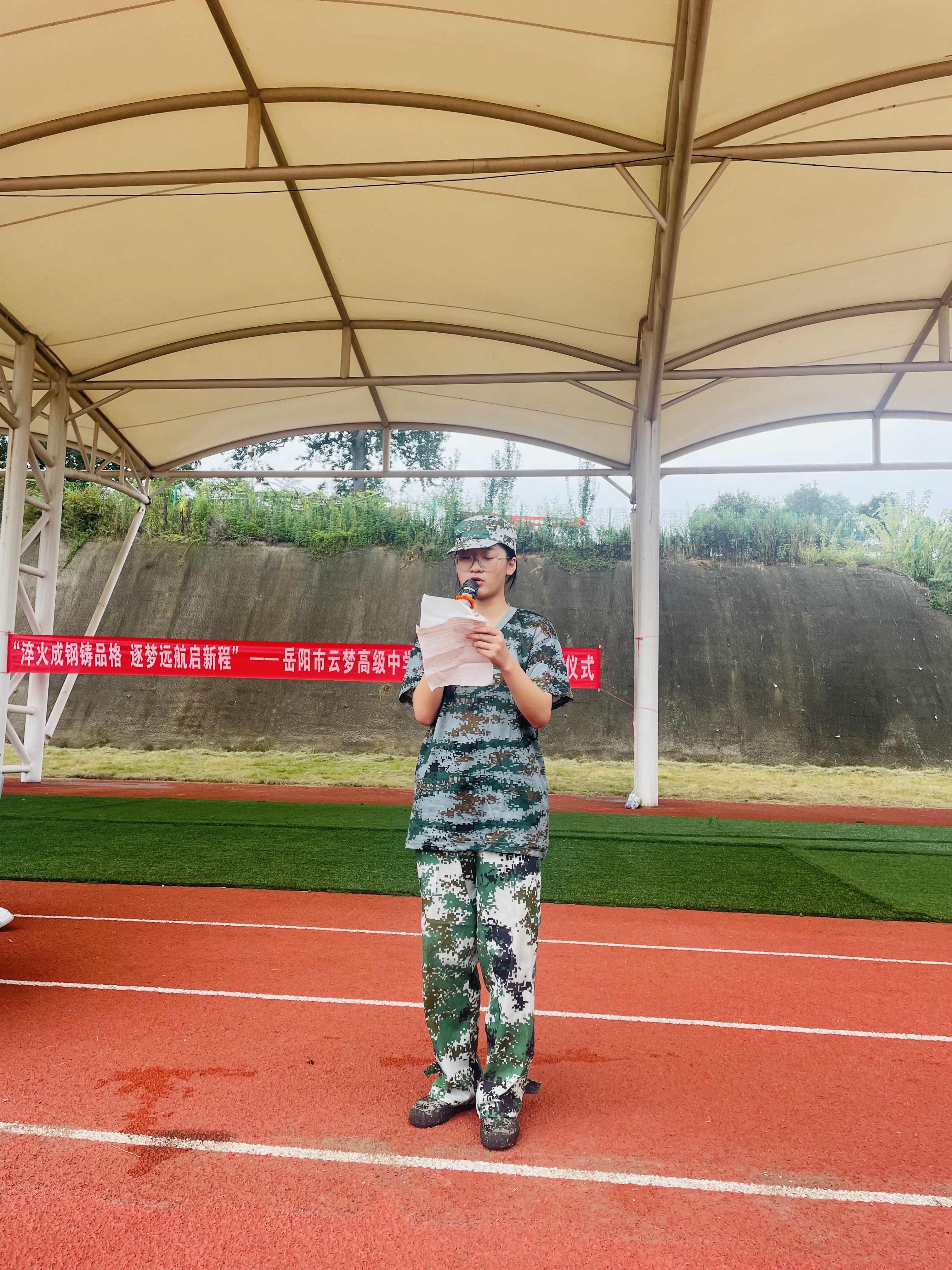 高一176班邓雨萱同学再次作为优秀学员代表发言。她分享了七天军训的收获与感悟,感谢教官的辛勤指导和老师的悉心陪伴,并表示将把军训中培养的优良作风延续到今后的学习生活中。