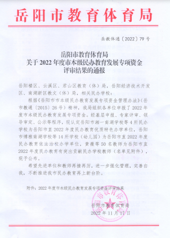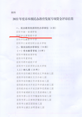 热烈祝贺我校被评为2022年市本级民办教育优质特色学校