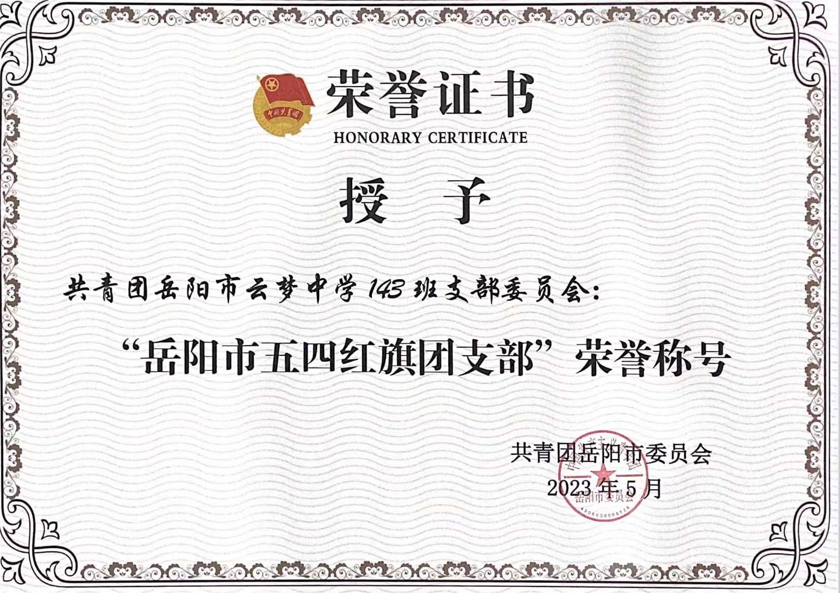 热烈祝贺我校143班团支部荣获“岳阳市五四红旗团支部”光荣称号、校团委书记刘嘉欣老师荣获“岳阳市优秀共青团干部”光荣称号