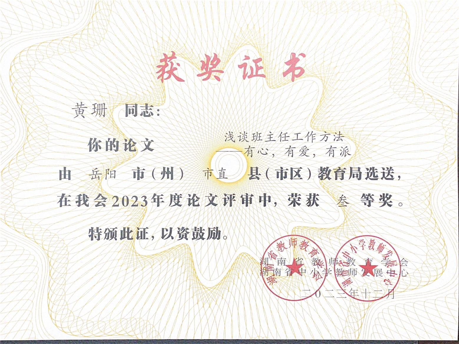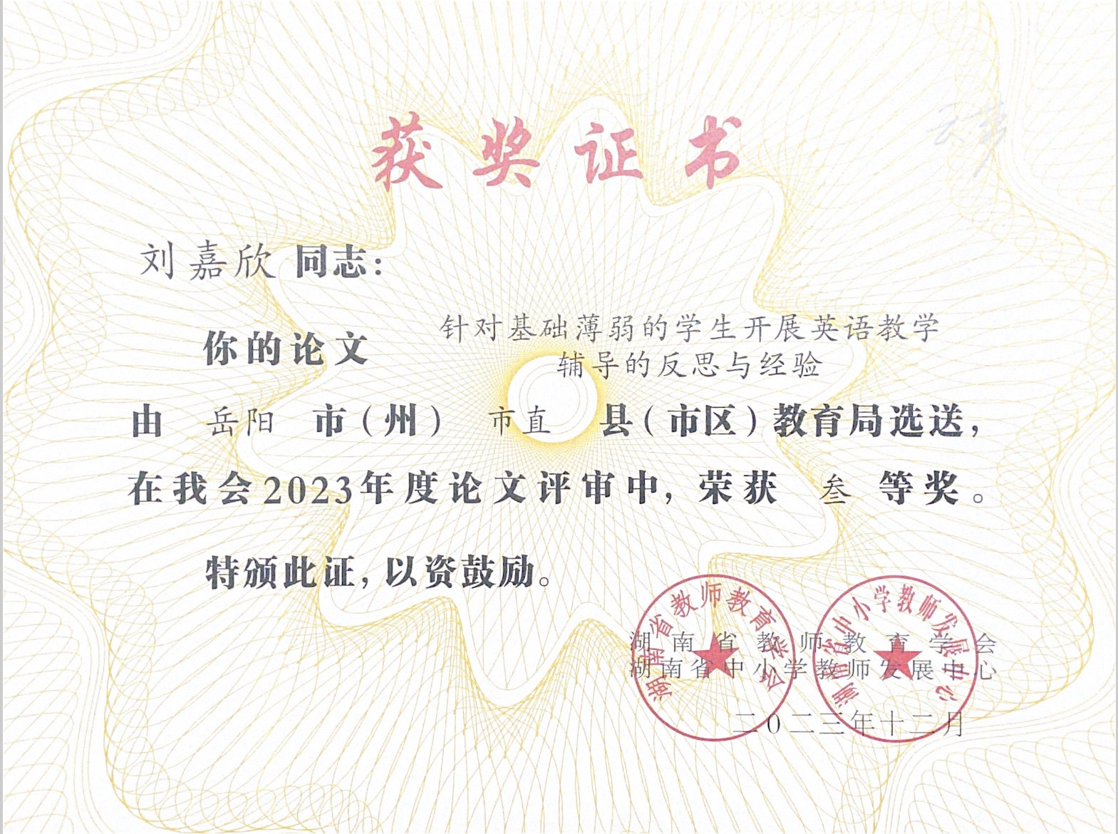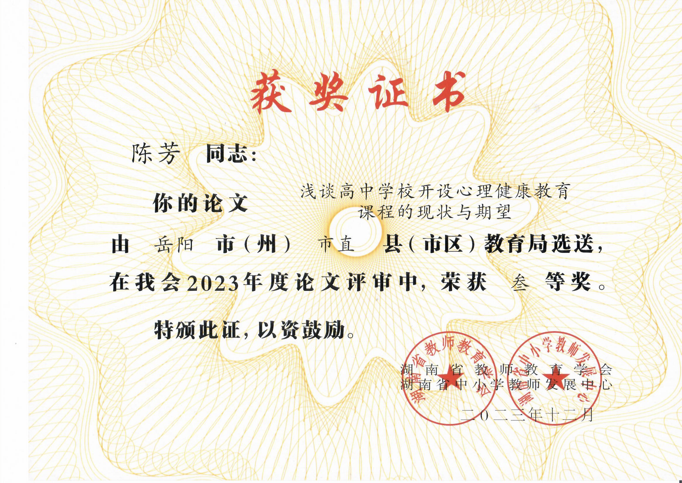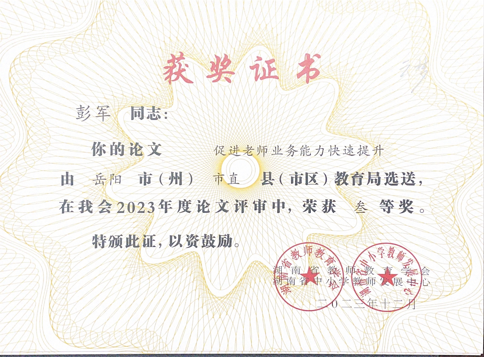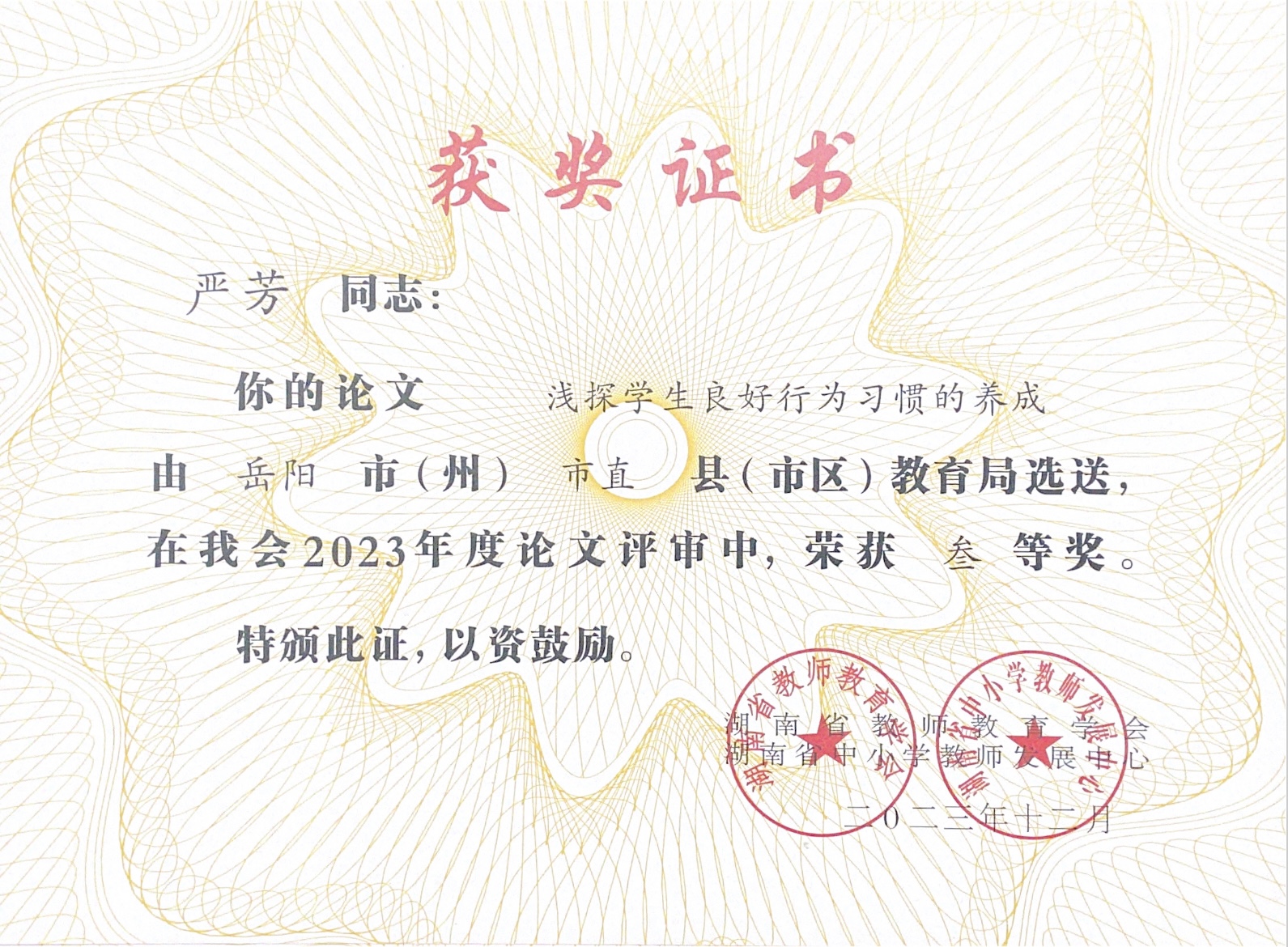 热烈祝贺彭军、陈芳、白建兰、黄珊、严芳、刘嘉欣老师论文获奖