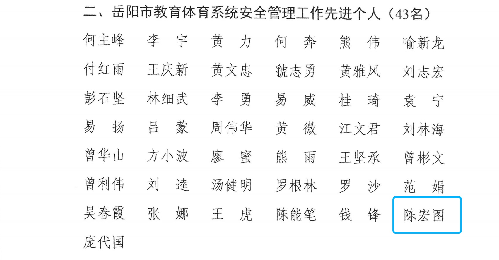 热烈祝贺德育处陈宏图主任荣获2024年度岳阳市教育体育系统安全管理工作“先进个人”称号