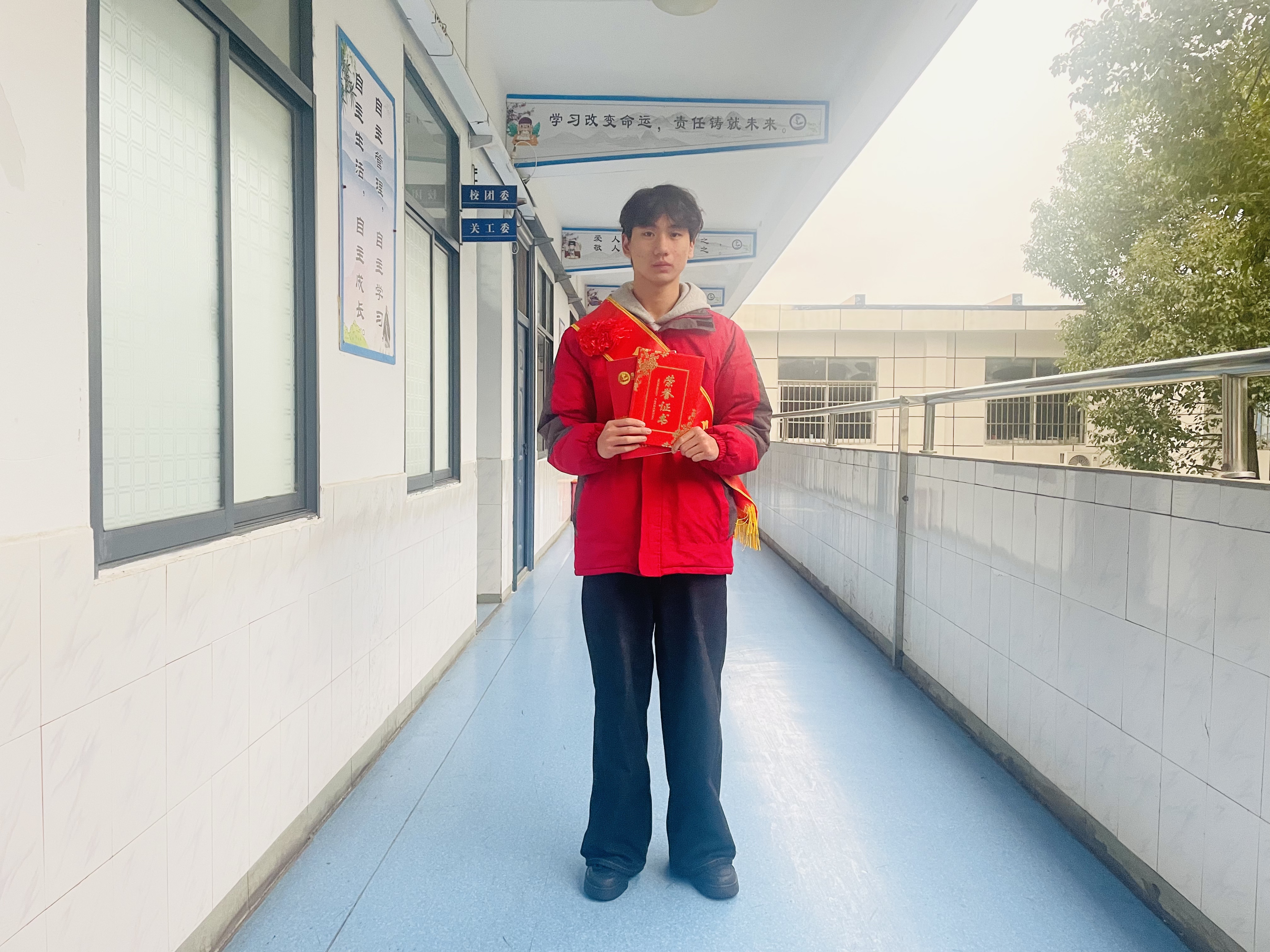 商鹏,高三年级161班学生,共青团员。他是一位品学兼优、勤勉踏实的学生。他平时谦逊低调,却时常展现出独到而深刻的见解。课堂上,他全神贯注;课后,他复习巩固,遇到难题从不轻言放弃,或是与同学深入探讨,或是向老师虚心求教。正是这份持之以恒的钻研精神,让他在整个高中阶段始终保持优异的成绩。对于学习,他有着深刻的个人领悟:“别说读书太苦,那是我看世界的路。”这句话既是他前进的动力,也生动诠释了他对知识的渴望与对未来的憧憬。