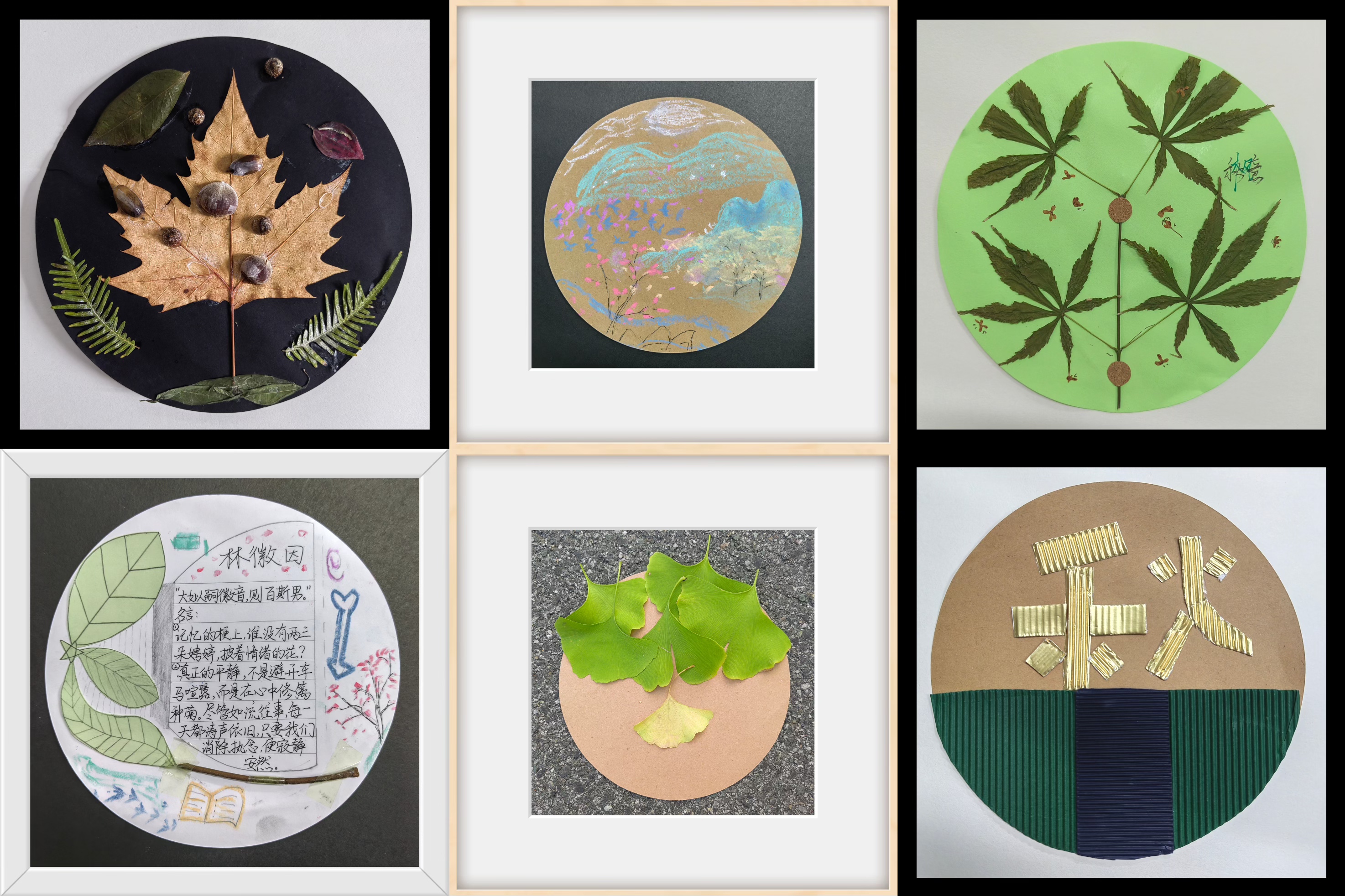 画卷徐徐合上,但秋日的回响仍在心间萦绕。这些作品,是同学们与自然的一场私密对话,也是一次内在的温柔探索。正如一位同学在寄语中写道:“当我小心翼翼地把这片脆弱的银杏叶粘在纸上时,我忽然接纳了自己的不完美。万物皆有裂痕,那是光照进来的地方。”