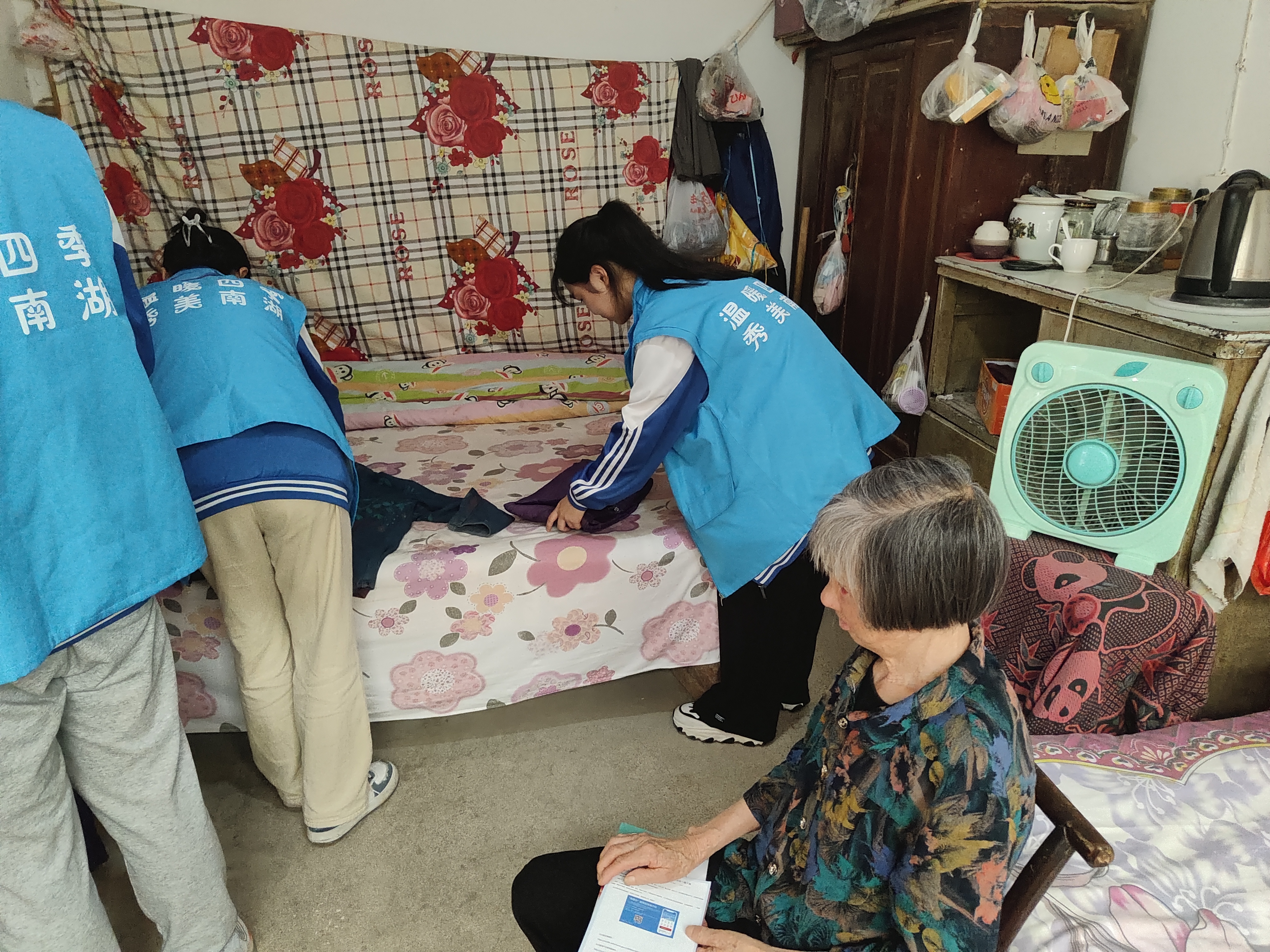 学生们还帮助行动不便的残疾人进行房屋清扫,让残疾人有一个干净、舒适的居住环境。