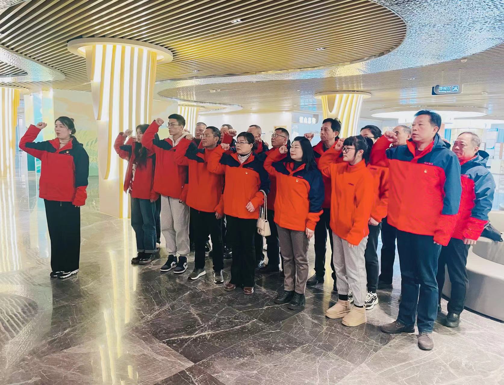 展陈馆宣誓厅悬挂着巨幅中国共产党党旗,庄严肃穆,全体党员面对党旗一起重温入党誓词:“我志愿加入中国共产党,拥护党的纲领,遵守党的章程,履行党员义务,执行党的决定,严守党的纪律,保守党的秘密,对党忠诚,积极工作,为共产主义奋斗终身,随时准备为党和人民牺牲一切,永不叛党。”铮铮誓言响彻在耳边,再一次洗涤每一位共产党员的心灵,回溯精神的根脉,感受涌动的初心,激发前行的动力。