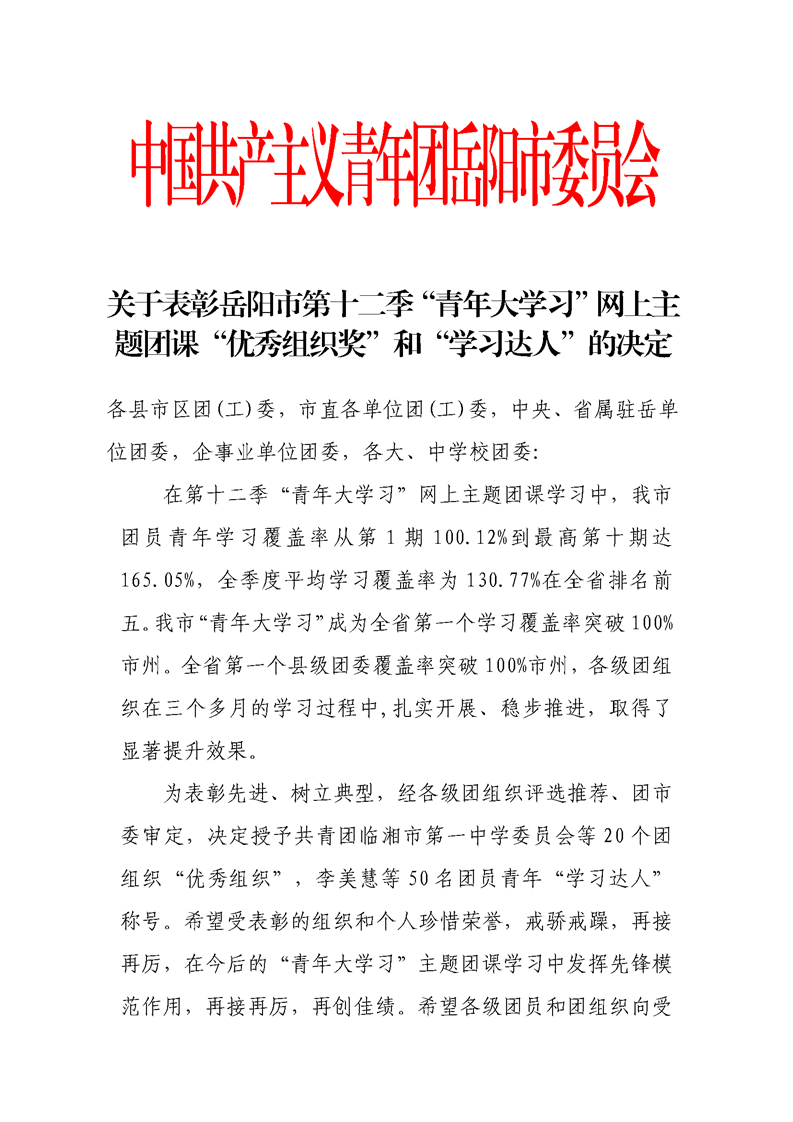 我校130班王依婷同学在团市委第十二季青年大学习评优中荣获“学习达人”荣誉称号