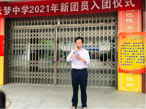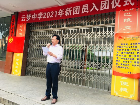 2021年5月10日,在教学楼前坪举行了云梦中学2021年新团员入团宣誓活动。通过本次活动使新团员明确地认识到中国共青团的重要性。这次大会也看出我校同学对团组织的拥护与热情的支持。参加本次活动的有云梦中学梁孟常校长、云梦中学甘水生校长、云梦中学曹军校长、办公室谢伟主任、德育处褚志主任、校团委刘嘉欣书记以及全校所有学生。
