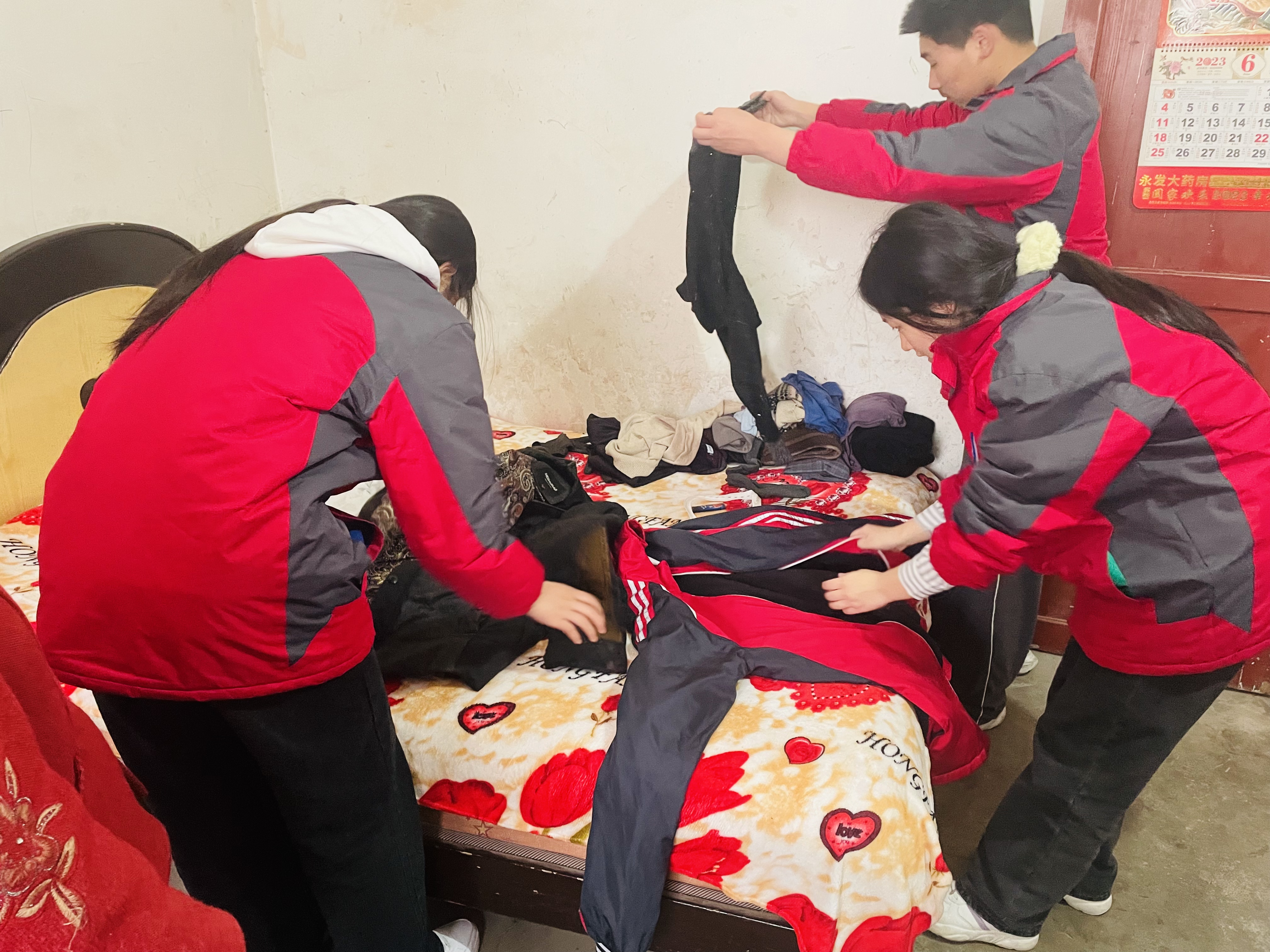 活动正式开始学生们在社区工作人员的带领下来到空巢老人家里给予他们最诚挚的问候与关怀
