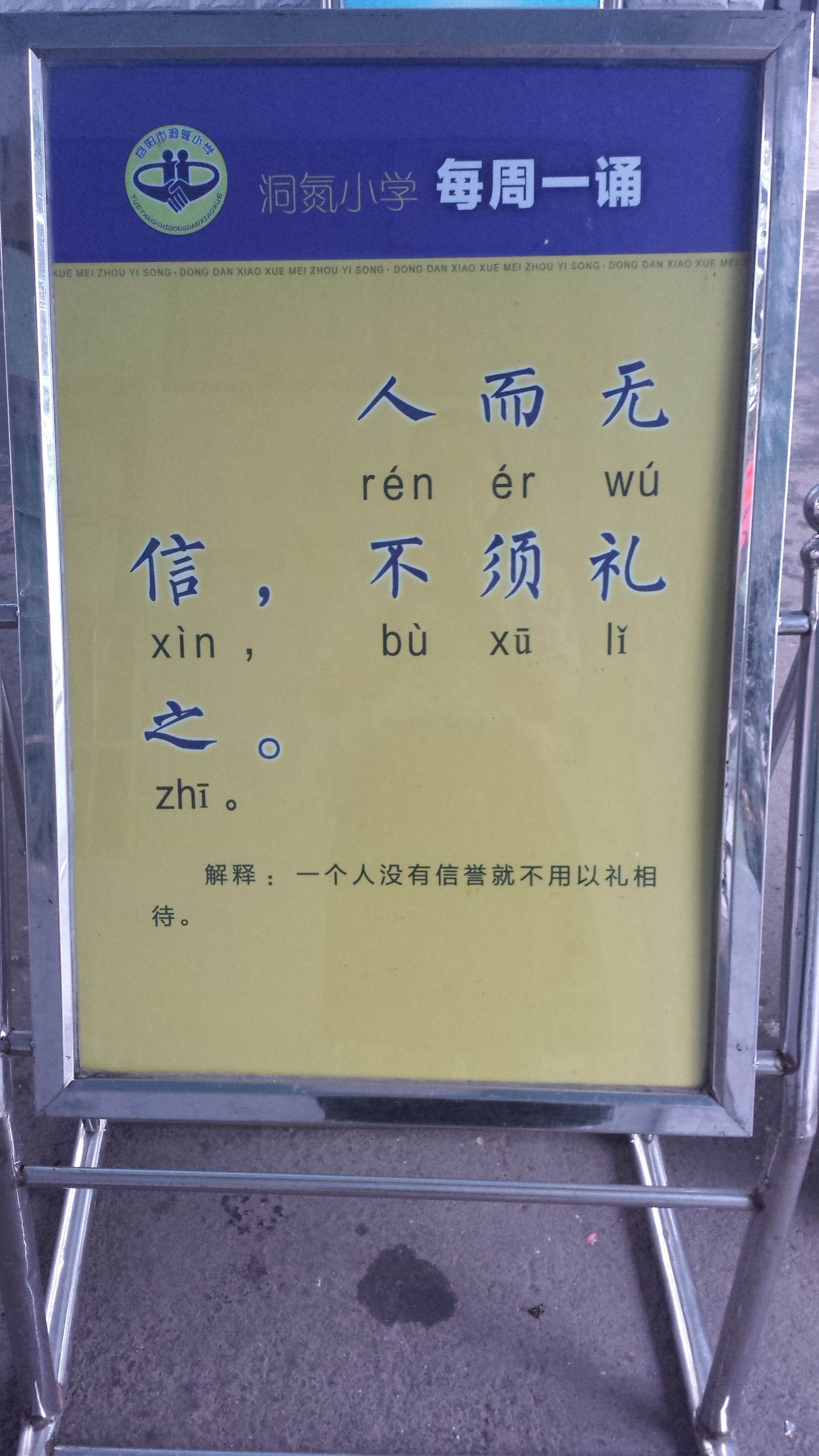 “人而无信,不须礼之”老师希望你们把这句话当做你们的座右铭,时刻提醒自己要言而有信,言出必行。最后,让我们再大声地读一遍吧!