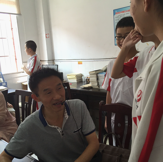 付秋芳老师总是蹲下身来了解学生的世界,关注他们的喜怒哀乐,参与他们的学习、生活。他深知身正为范,用自己的一举一动教育着学生们。一次,有个学生病了,上课时呕吐了起来,付老师立马放下粉笔快步跨过来,来不及拿抹布就赶紧用双手一把捧住学生吐出的脏东西,脸上没有一丝的嫌弃和不快,嘴里还关切地问:“是不是感冒了?”在老师的感染下班上的同学们也纷纷递上纸巾、端来热水、打扫卫生。爱心,是一把万能的钥匙,它开启了孩子的心灵之门,也让老师融入孩子的情感世界。