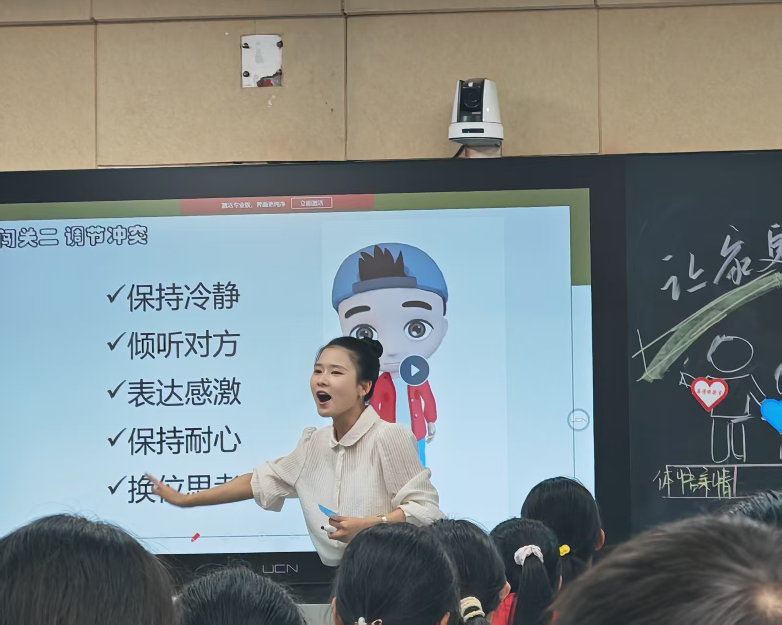 她通过开设心理班会课,普及心理健康知识,设置“解忧信箱”、“心灵树洞”架起与学生沟通的桥梁,了解他们的心理动态。面对因身体太胖而自卑的小万同学,她耐心地告诉她“真正的美像星星,不在于大小,而在于是否闪耀。”面对自我认同度低而没有学习动力的小福同学,她一条一条记下他在课堂学生和作业完成上的优点,让小福认识到自己原来也是闪闪发光的,让他逐渐自信起来。面对人际交往遇到困难的小黄同学,给她分享“管理情绪、尊重他人、换位思考”的交友妙招,解决了她不受同学欢迎的困境。