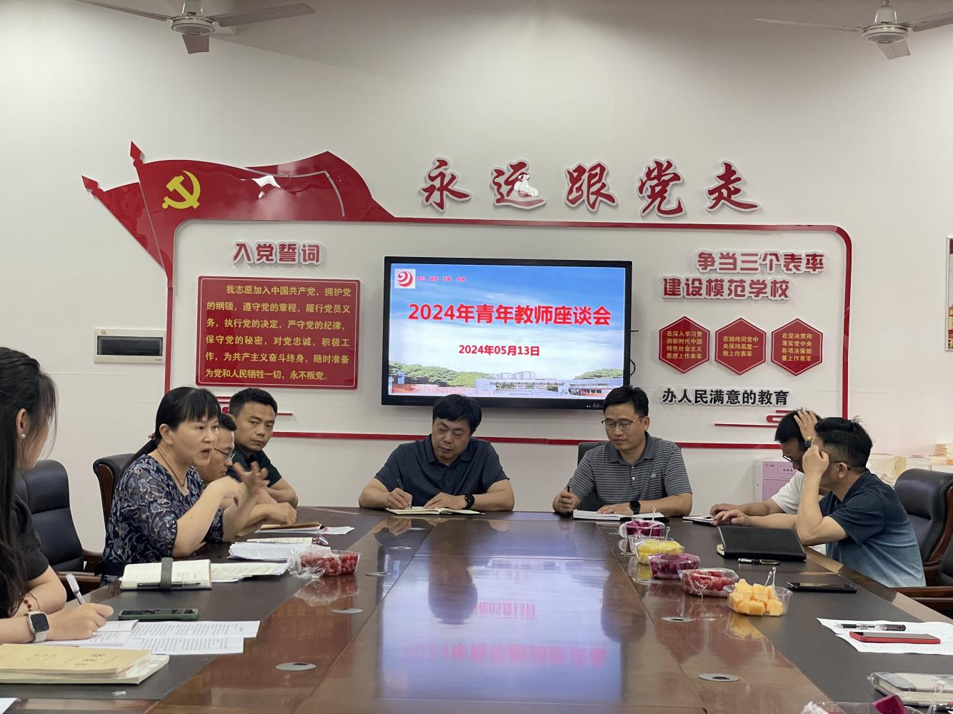 为进一步促进青年教师快速成长,提升业务水平和专业素养,铸就一支朝气蓬勃、积极向上的青年教师队伍。5月13日下午,在学校党建活动室召开了青年教师座谈会。岳阳市第九中学党总支书记何厚龙、党总支副书记,校长罗贤峰、副校长葛志明、副校长曾超及相关处室负责人,全校青年教师共计40余人参加会议。教研处主任杨昌平主持会议。
