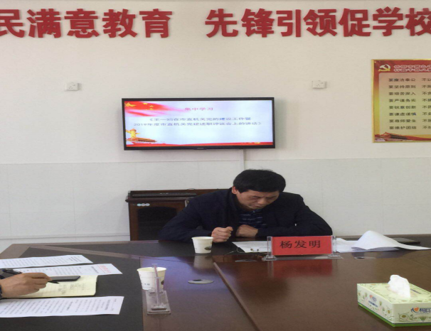 会上杨发明同志首先组织大家学习了《王一鸥在市直机关党的建设工作暨2019年度市直机关党建述职评议会上的讲话》。