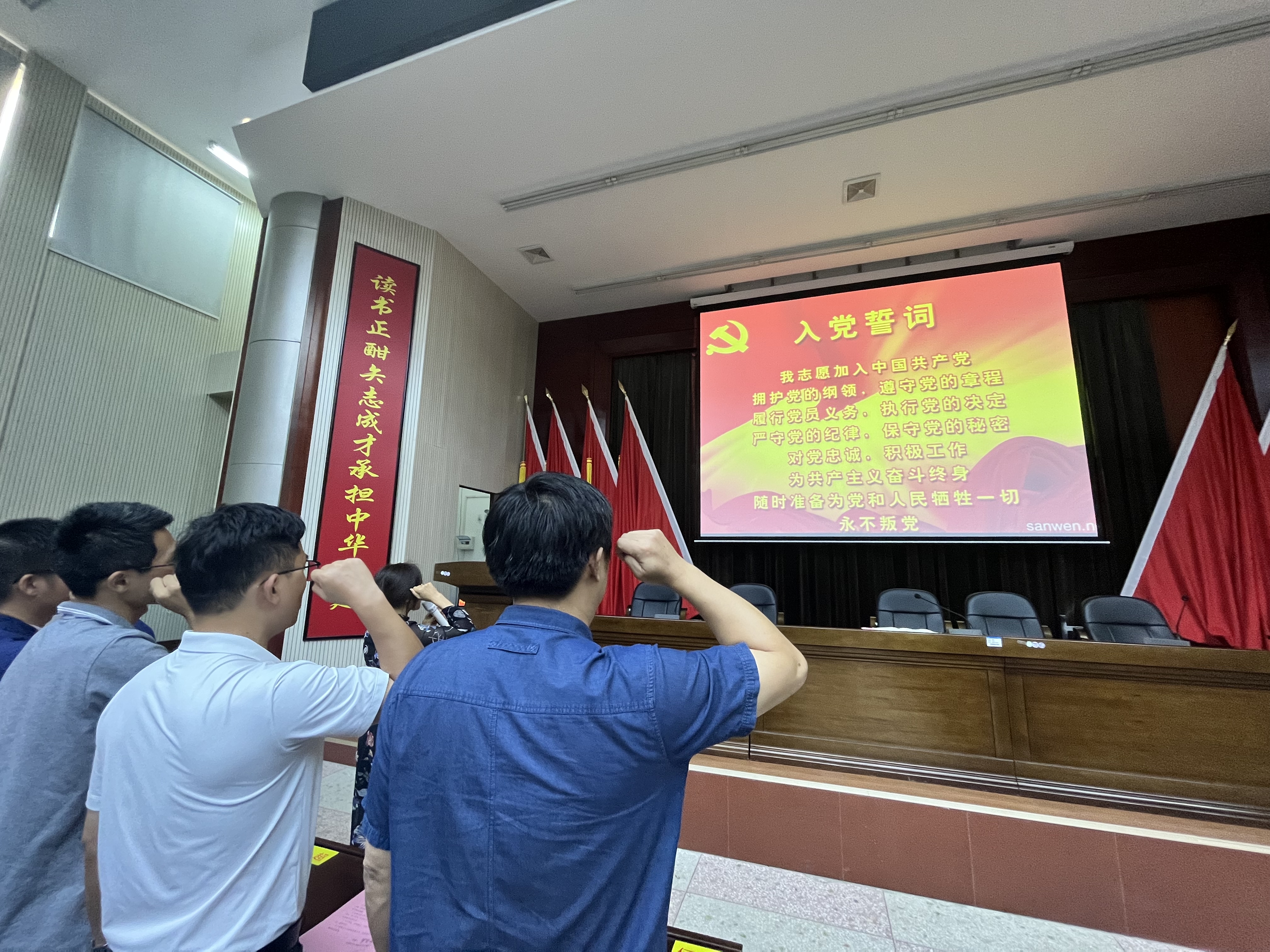 “我志愿加入中国共产党,拥护党的纲领...”全体党员在综合支部书记田素辉同志的领誓下,庄严宣誓。