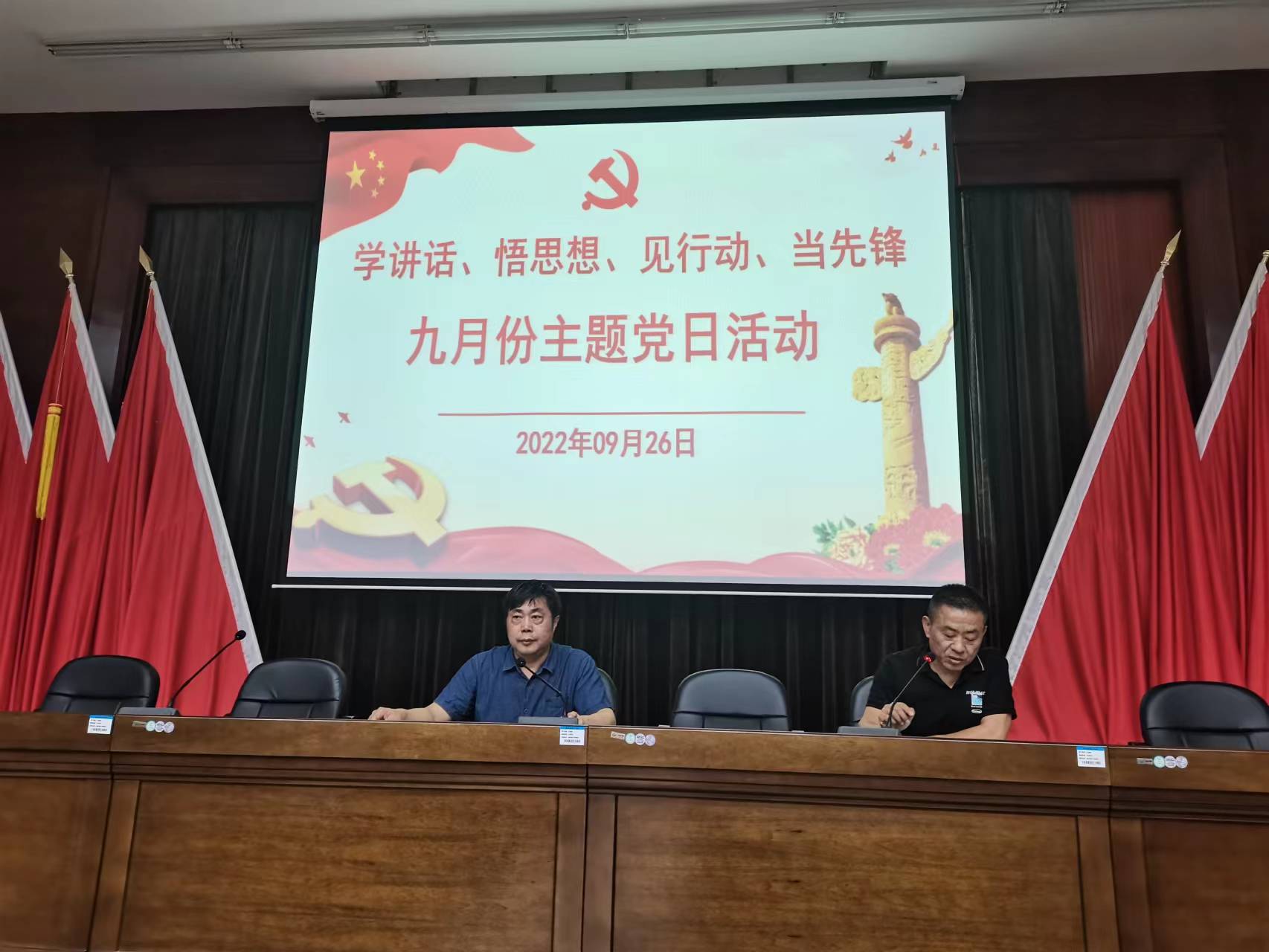 为迎接党的二十大胜利召开,推进党员学习教育常态化、制度化,严格党的组织生活,增强党组织的凝聚力、战斗力,充分发挥党员的先锋模范作用,9月26日第八节在综合楼学术报告厅组织召开了“学讲话、悟思想、见行动、当先锋”主题党日活动。党总支副书记冯新满同志主持活动。