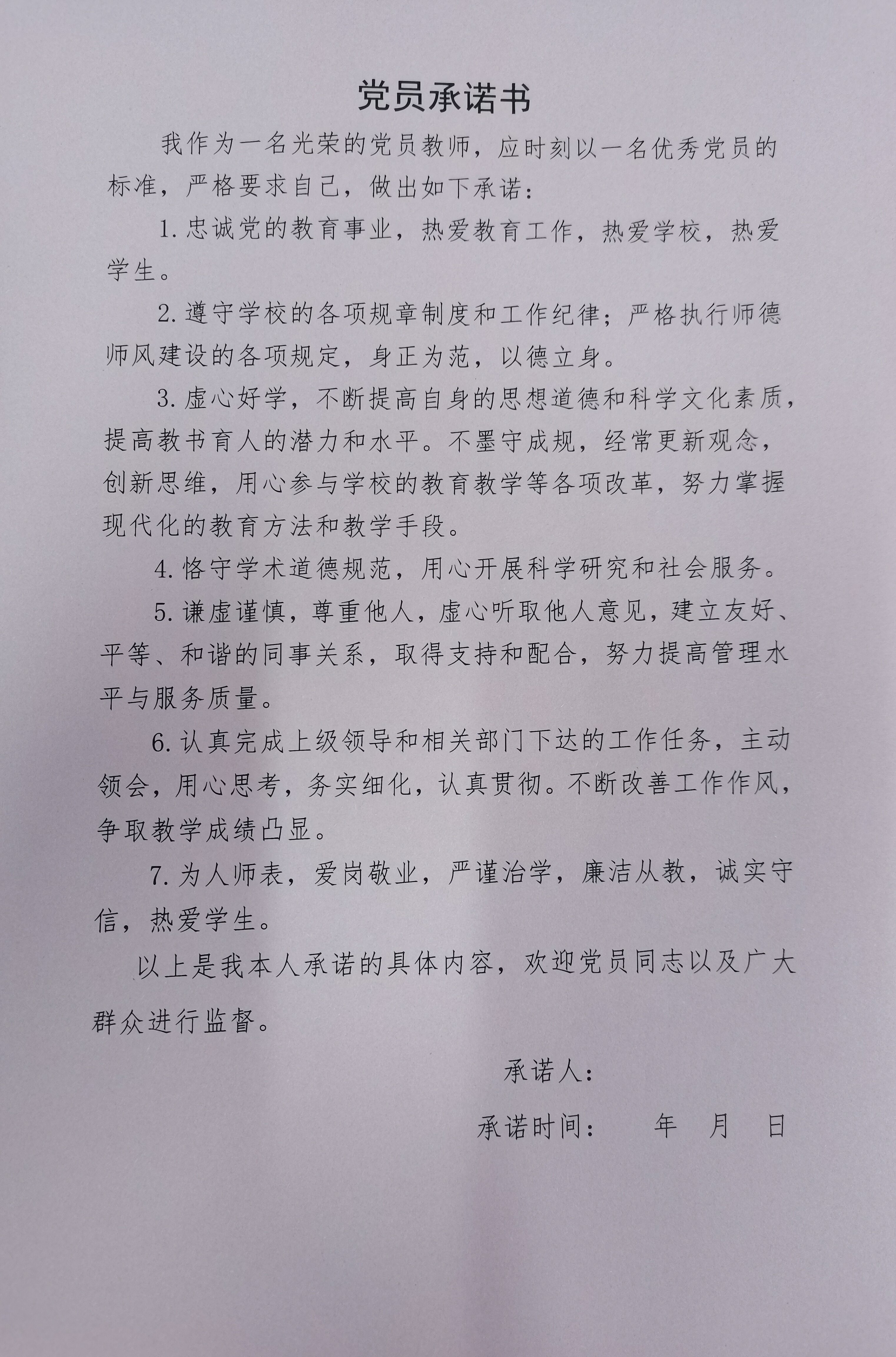 冯新满同志宣读了党员承诺书,并要求全体党员教师按照承诺书上的内容执行,并落实到工作中去。