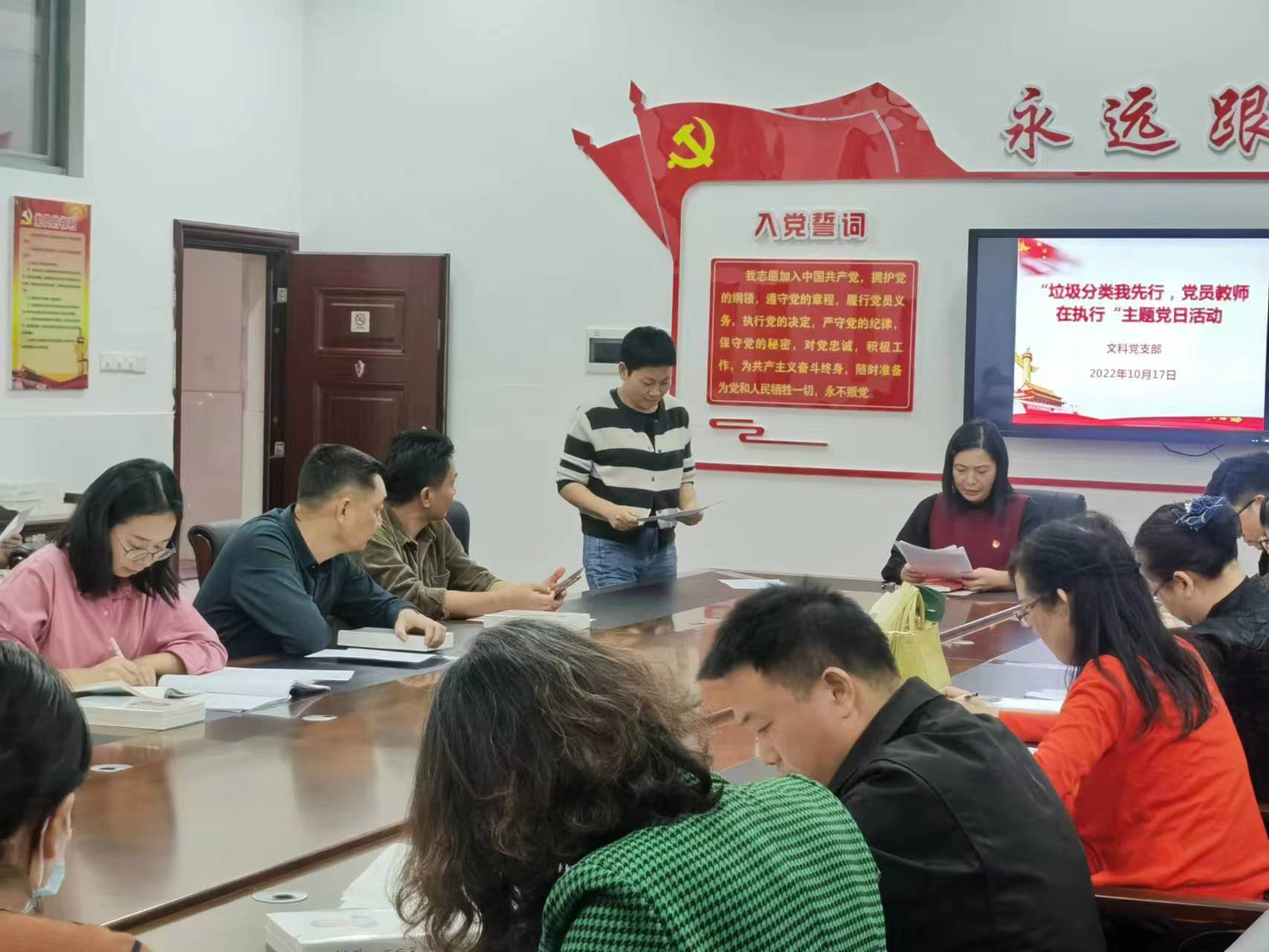 文科支部党员观看垃圾分类宣传片