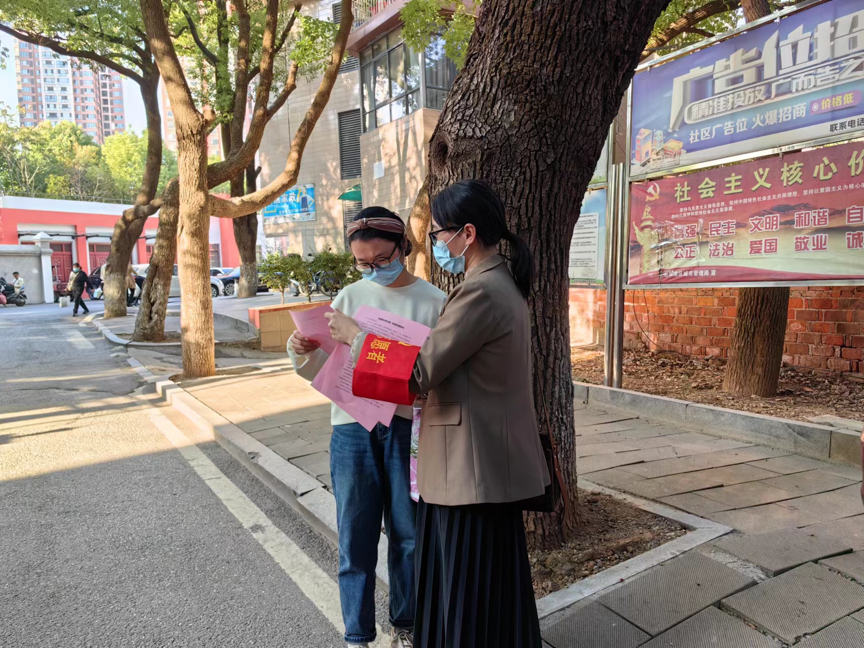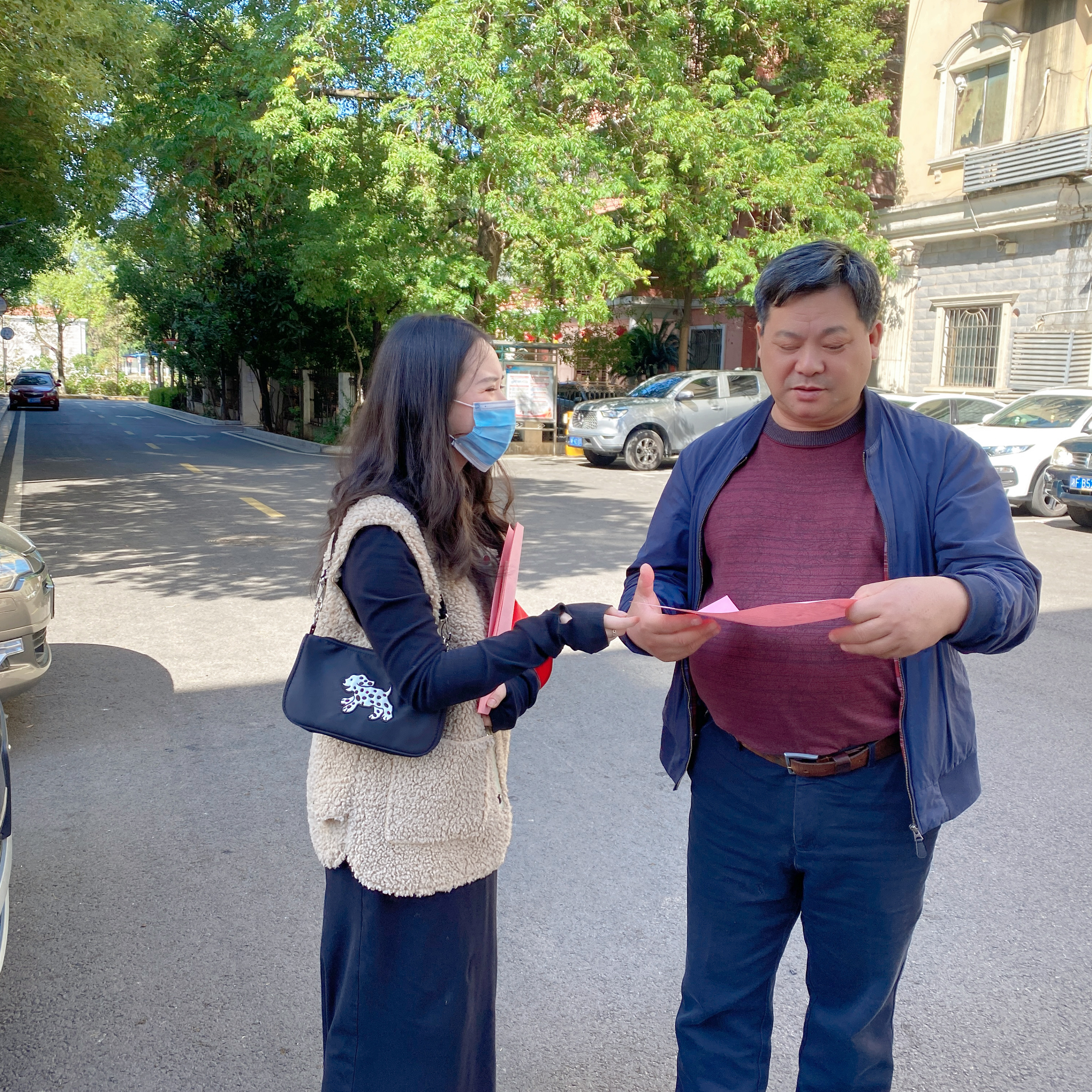 10月19日上午11点,田素辉书记带领党员志愿者小分队走进社区,向广大居民发放垃圾分类宣传材料,努力营造良好的社会氛围,对居民投放生活垃圾进行面对面指导,普及“两看一查”和分类基本知识,以实际行动推动垃圾分类成为文明新时尚。