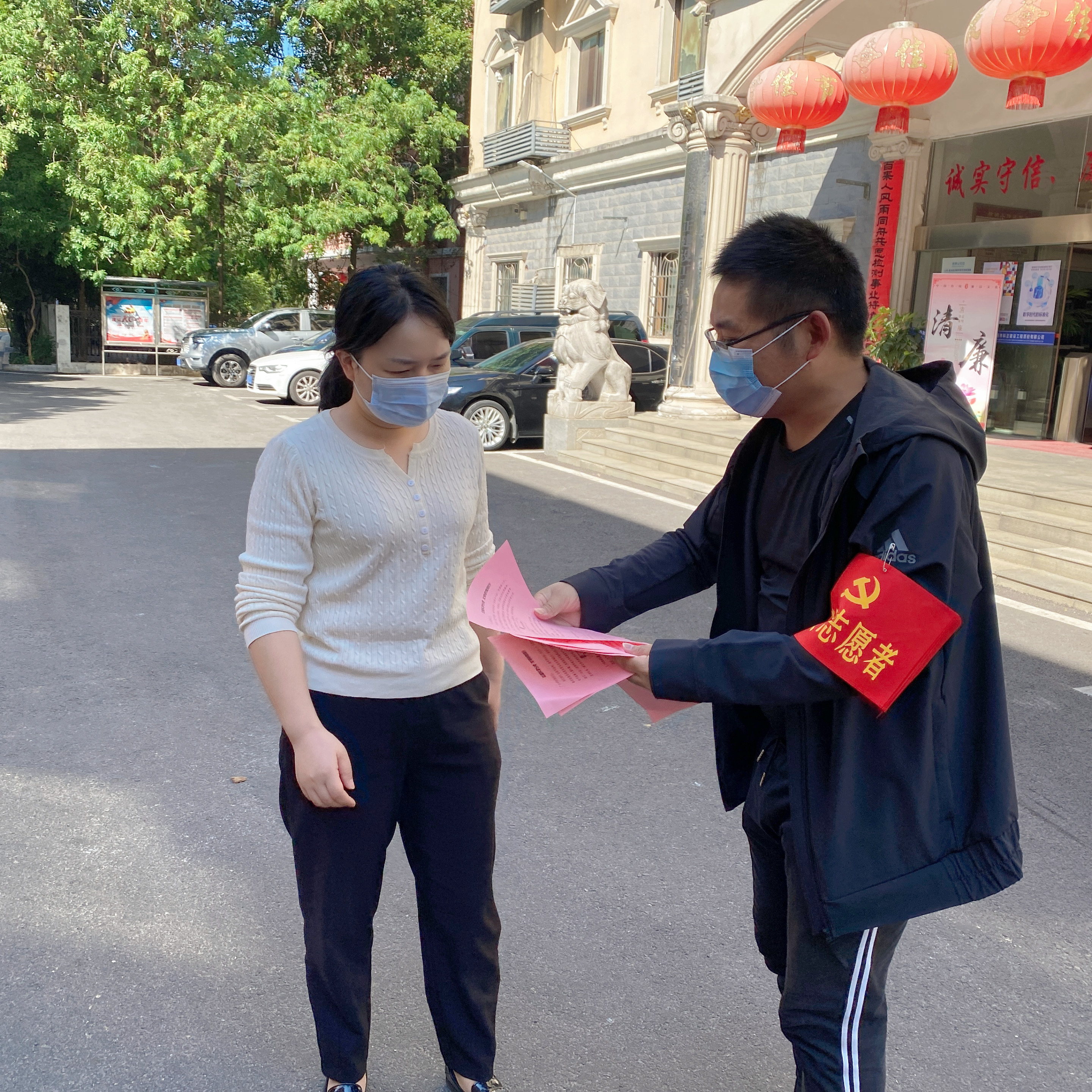 理科支部党员志愿者下社区发放垃圾分类宣传单