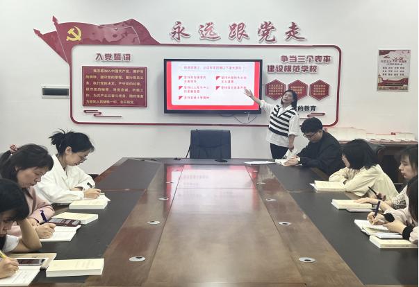 会议第一项支部书记贺芙荣对杨紫珺老师做介绍。