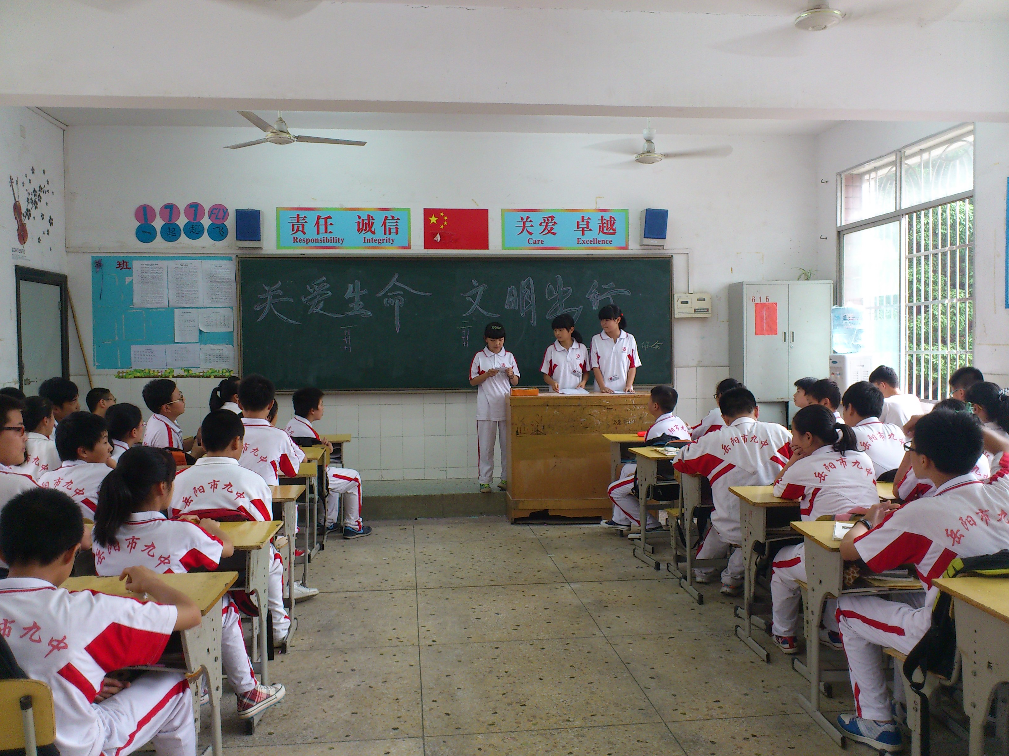 2013年6月7日,岳阳市第九中学各班召开了“关爱生命,文明出行”的主题班会。